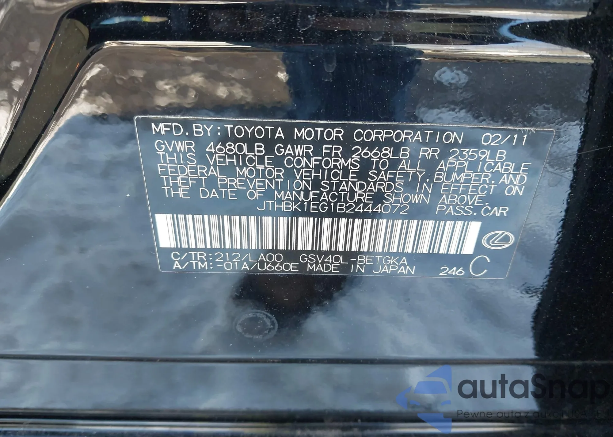 LOT: 43930618 VIN: JTHBK1EG1B2444072