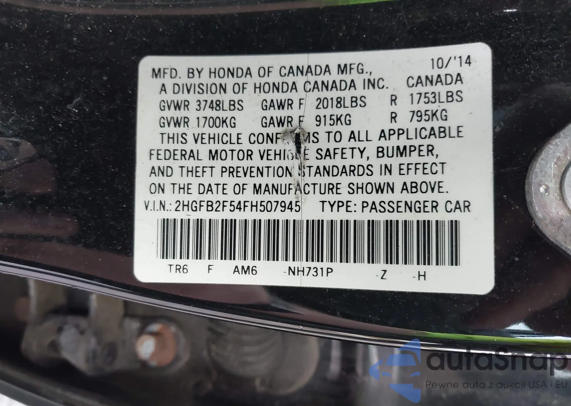 • VIN 2HGFB2F54FH507945