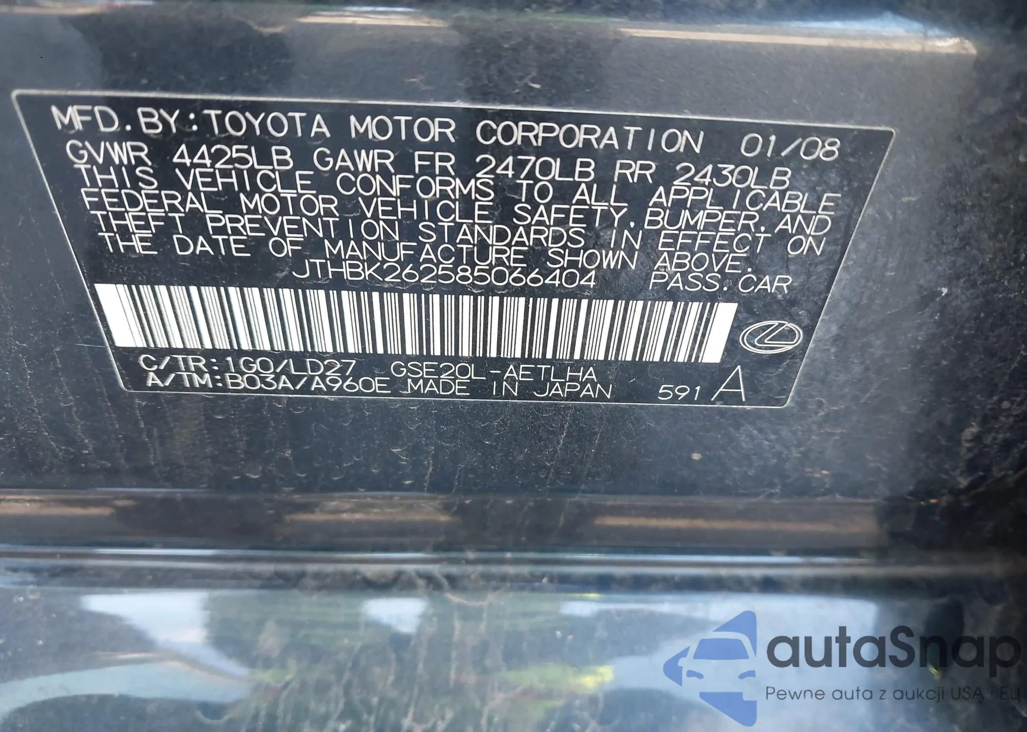 LOT: 44076698 VIN: 4T4BE46K69R112562