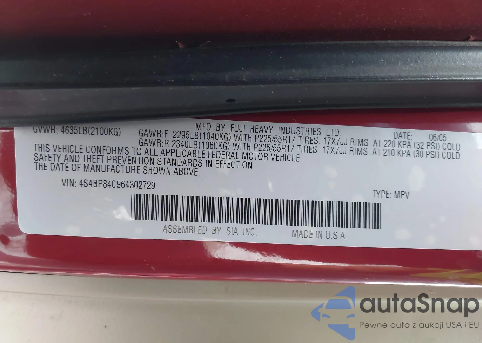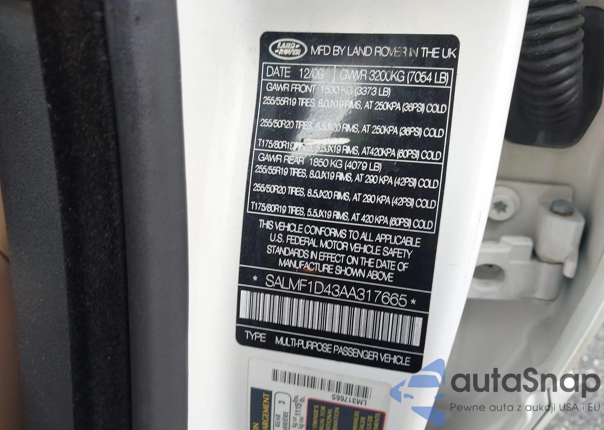 • VIN SALMF1D43AA317665