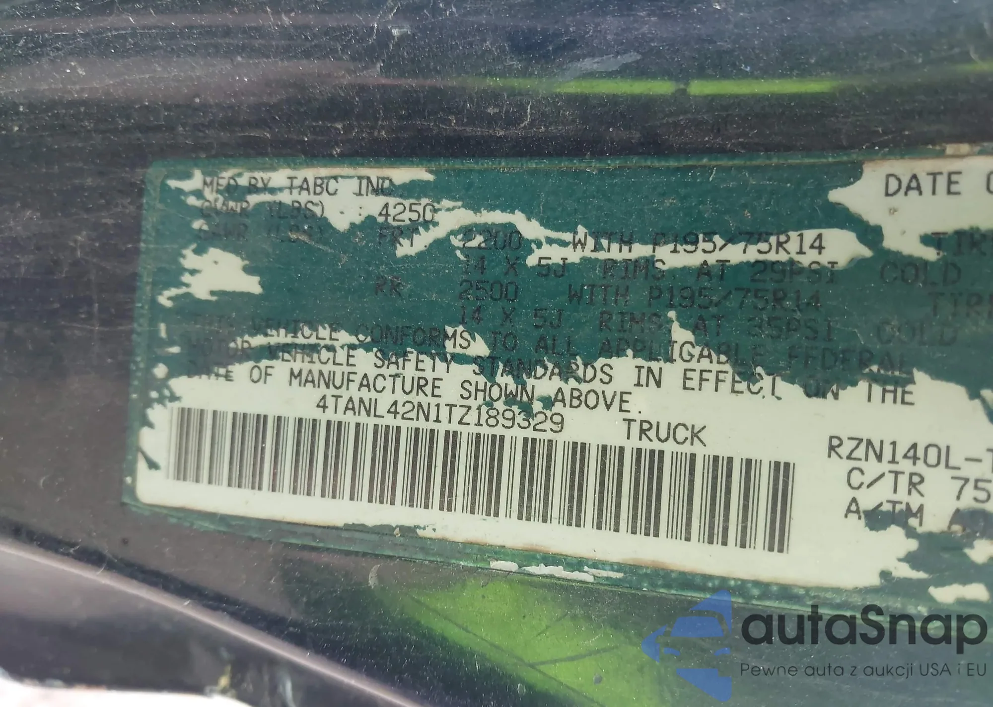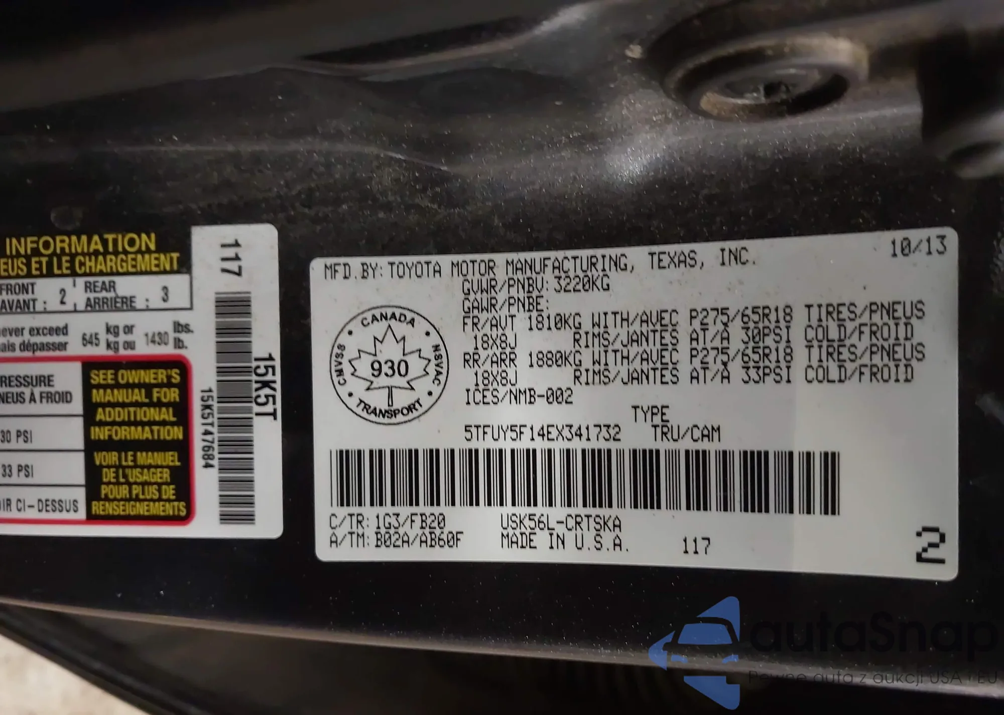 • VIN 5TFUY5F14EX341732