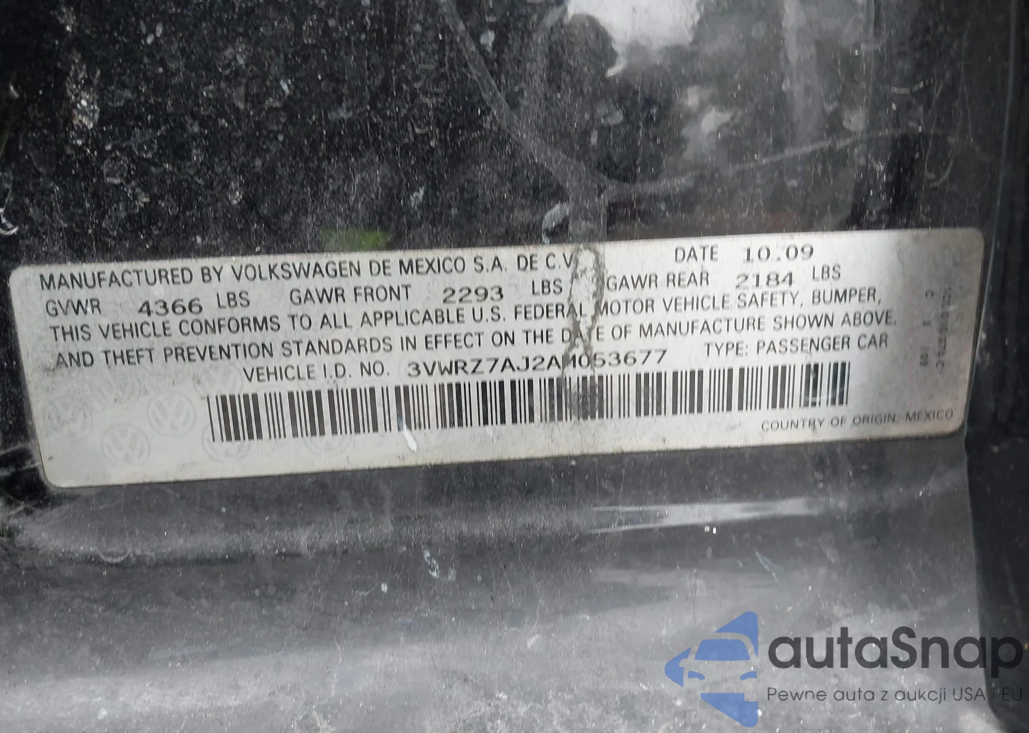 • VIN 3VWRZ7AJ2AM053677