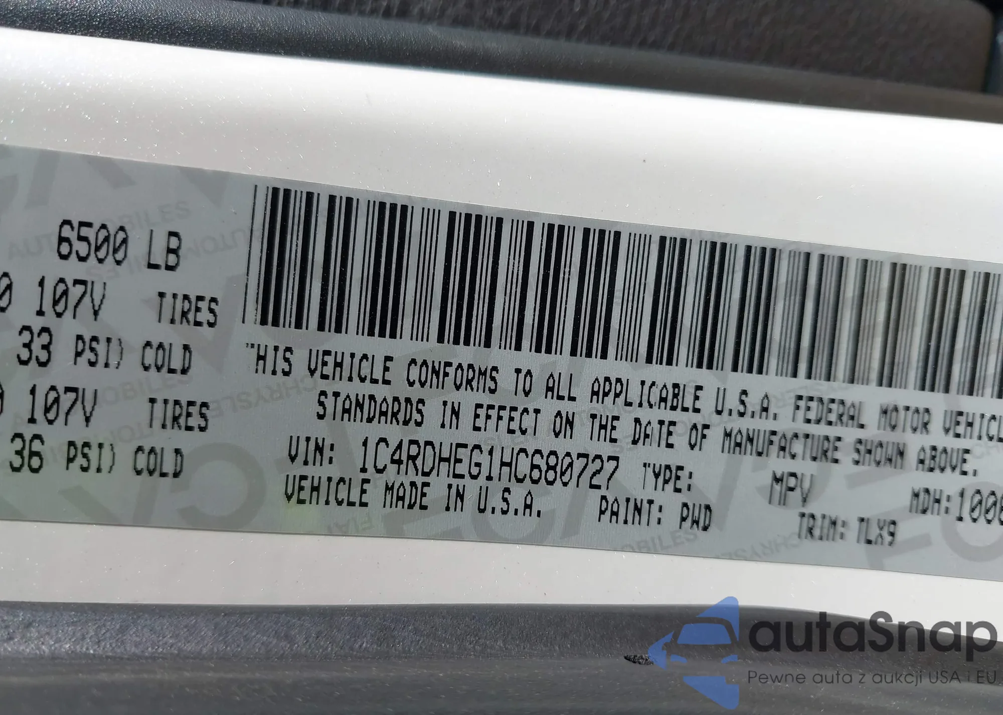 • VIN 1C4RDHEG1HC680727