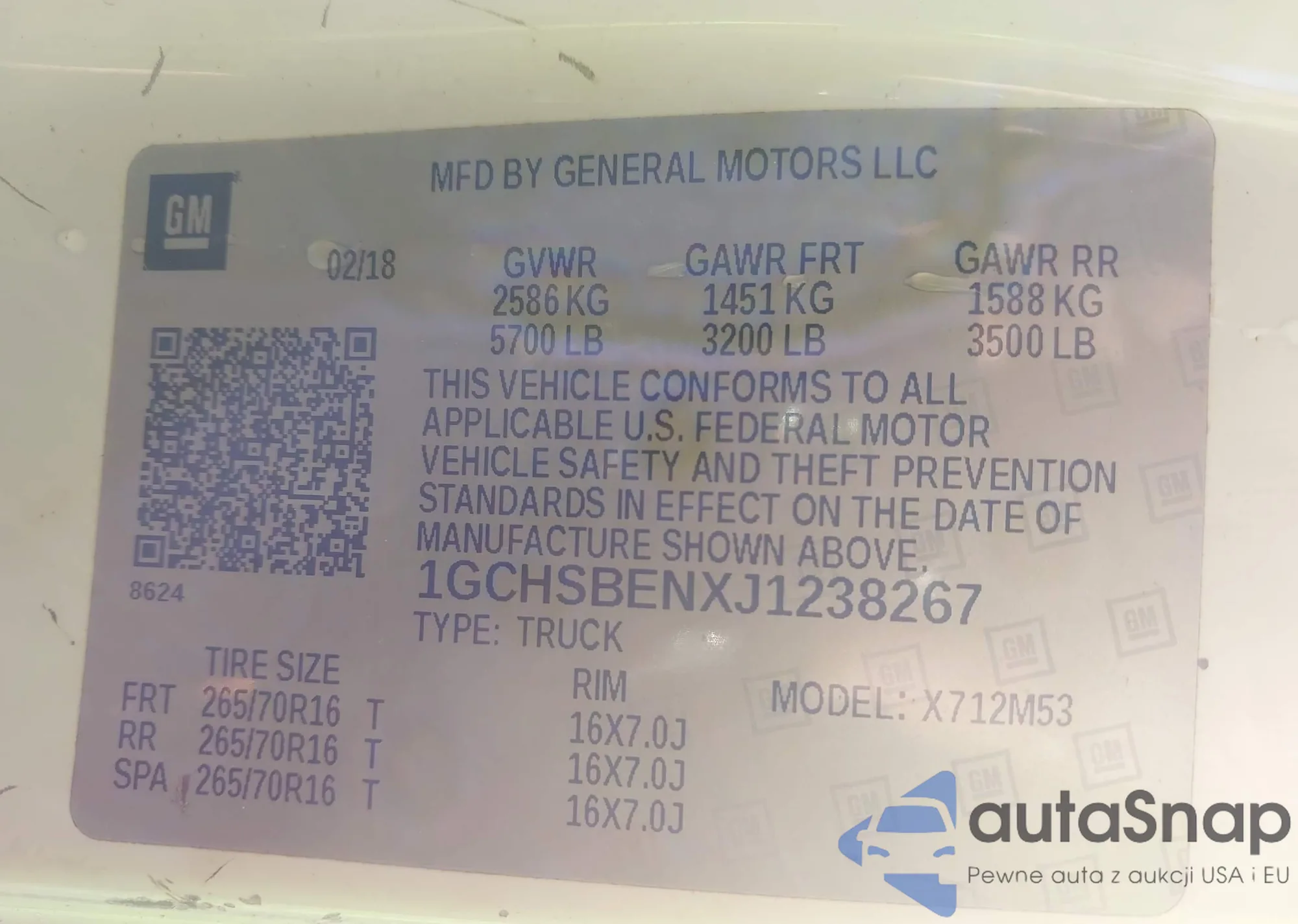 LOT: 43944770 VIN: 1GCHSBENXJ1238267