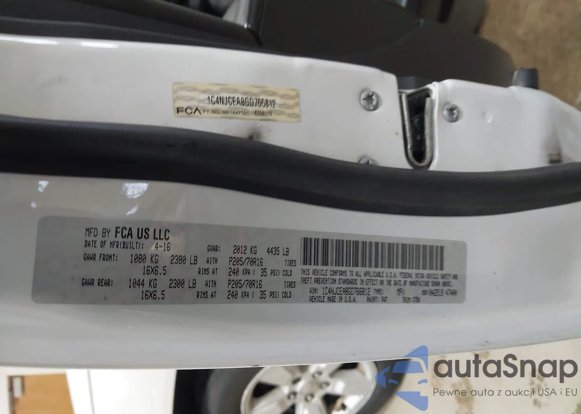LOT: 43947883 VIN: 1C4NJCEA8GD766812