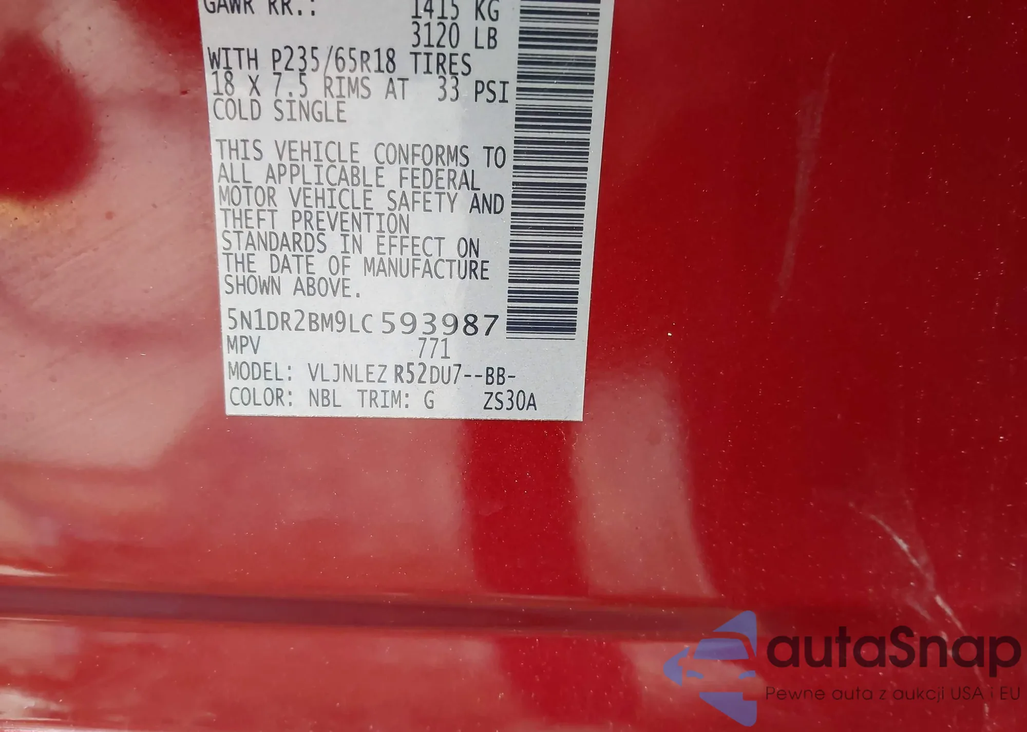 • VIN 5N1DR2BM9LC593987