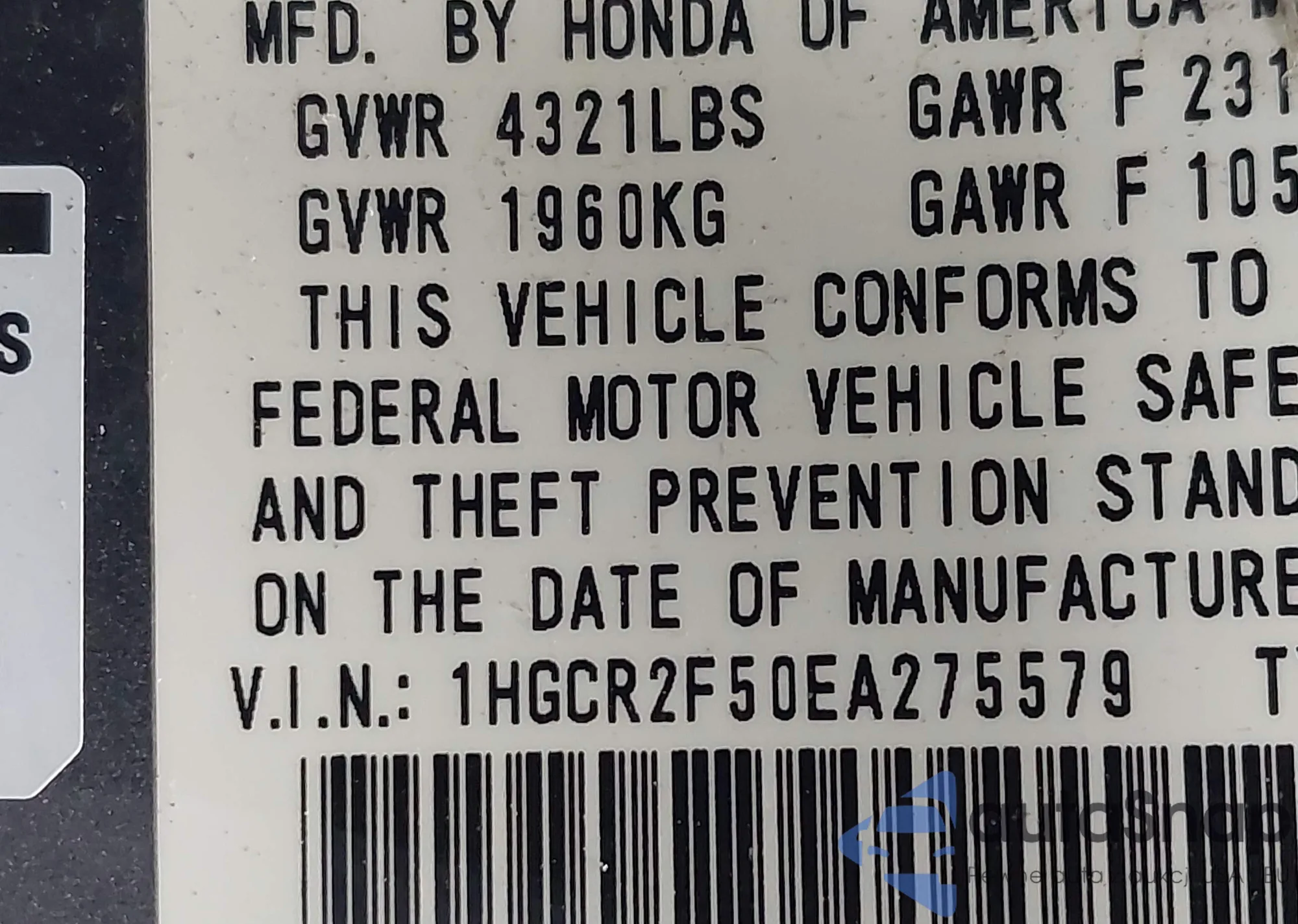 • VIN 2HKRM4H53GH673672