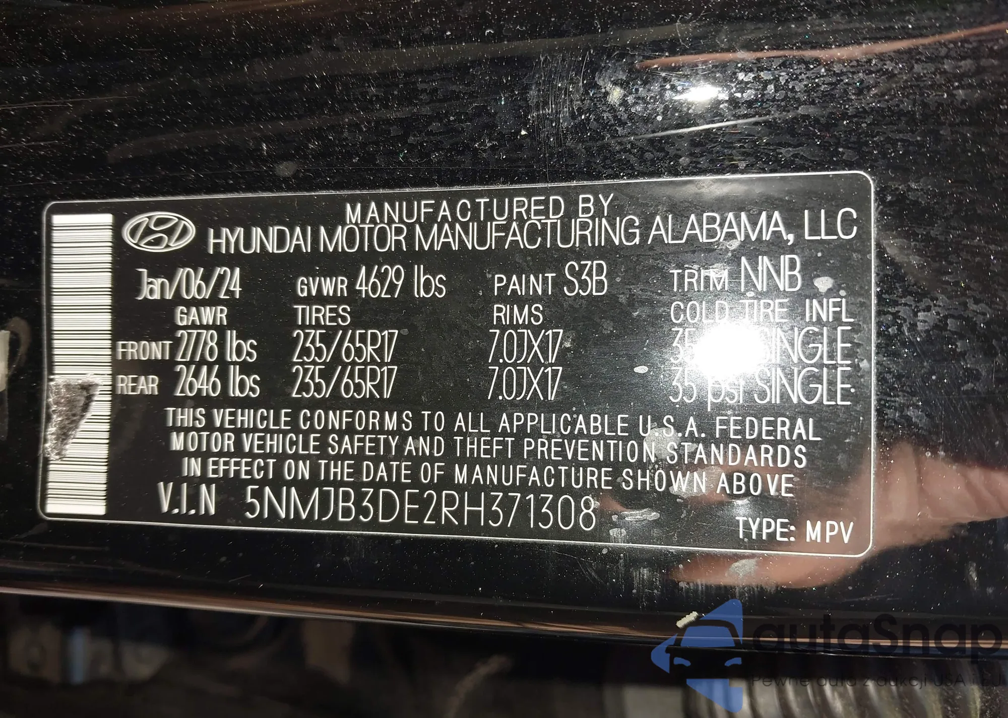 • VIN 5NMJB3DE2RH371308