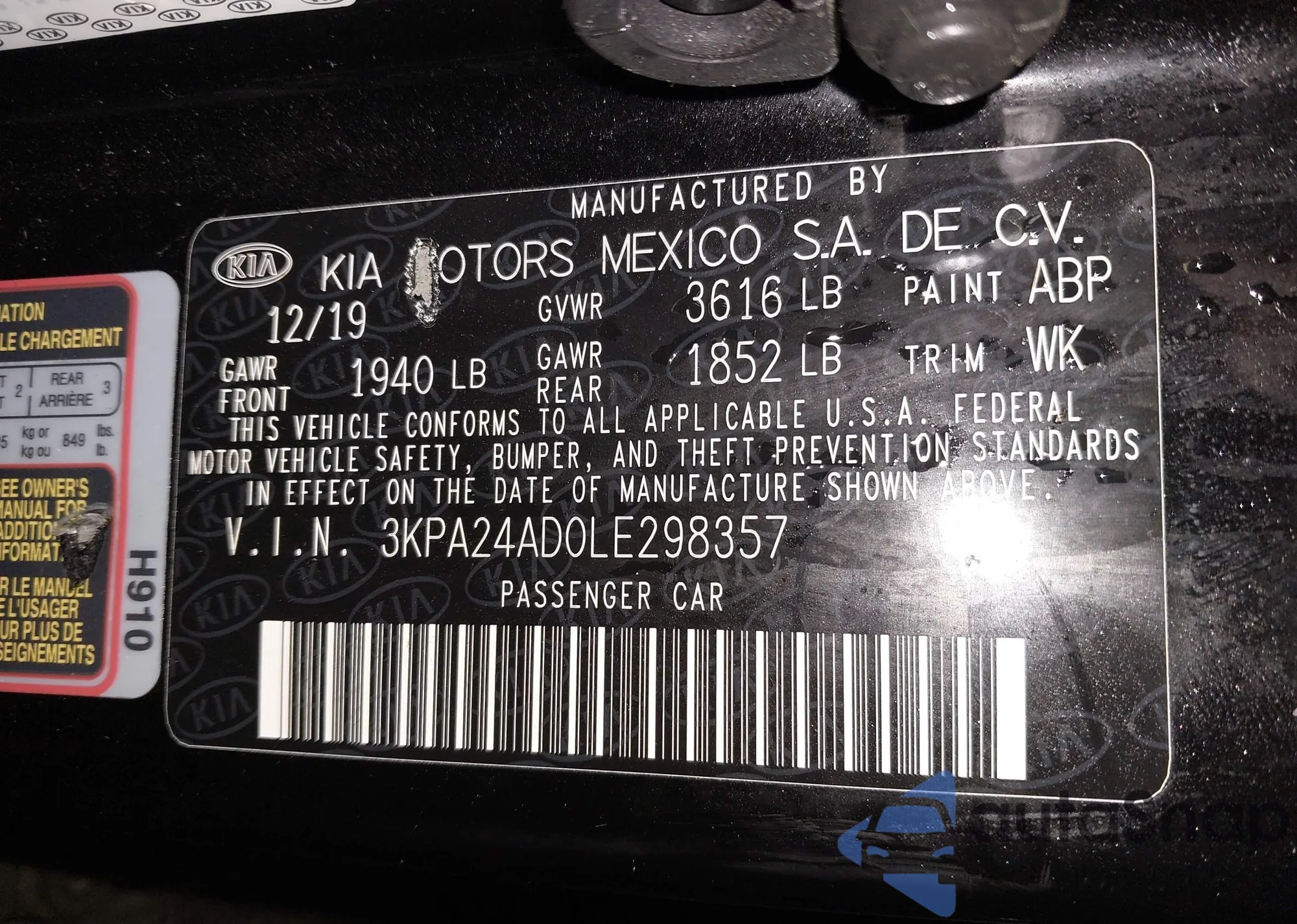 • VIN 3KPA24AD0LE298357