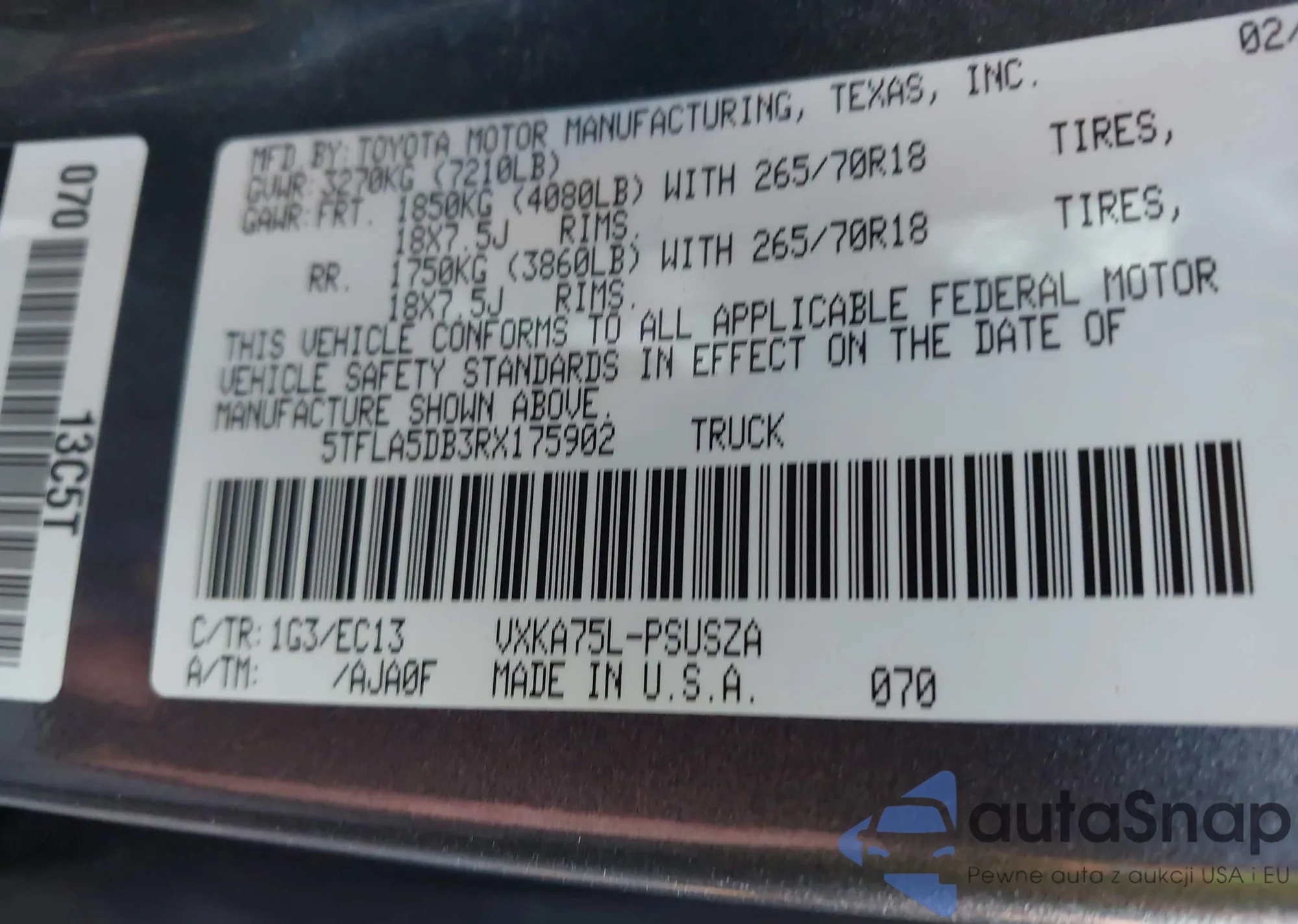 • VIN 5TFLA5DB3RX175902