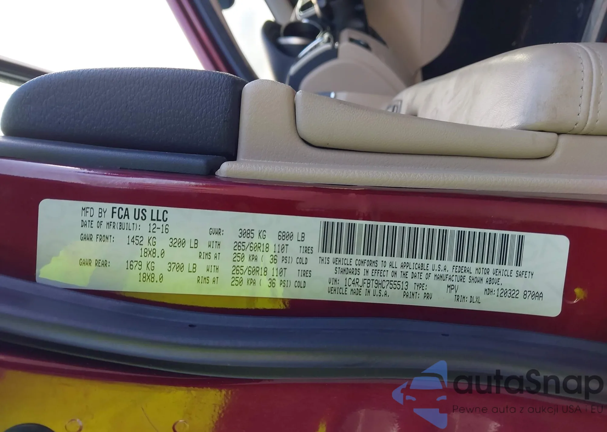 • VIN 1C4RJFBT9HC755513