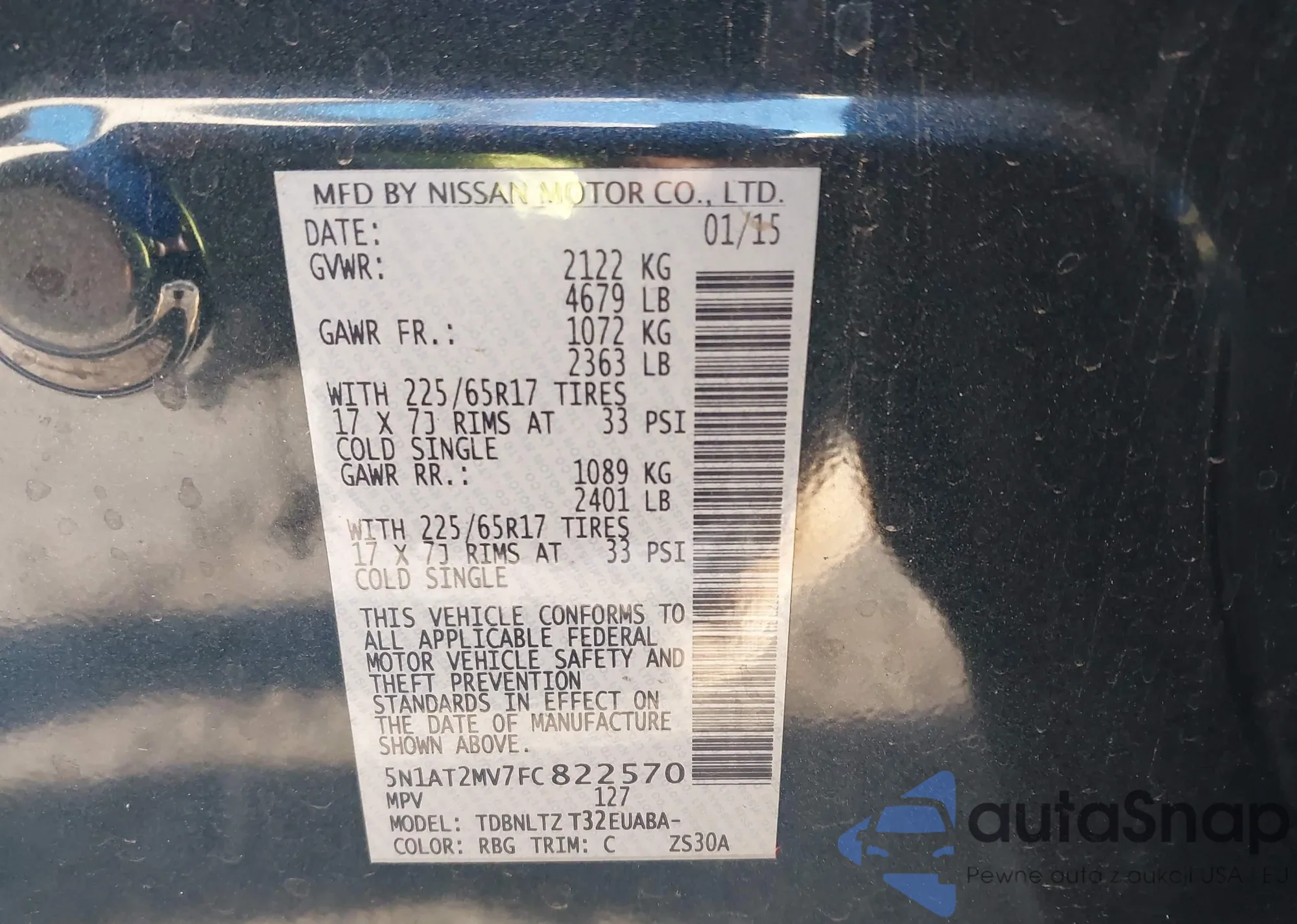 LOT: 43935763 VIN: 5N1AT2MV7FC822570