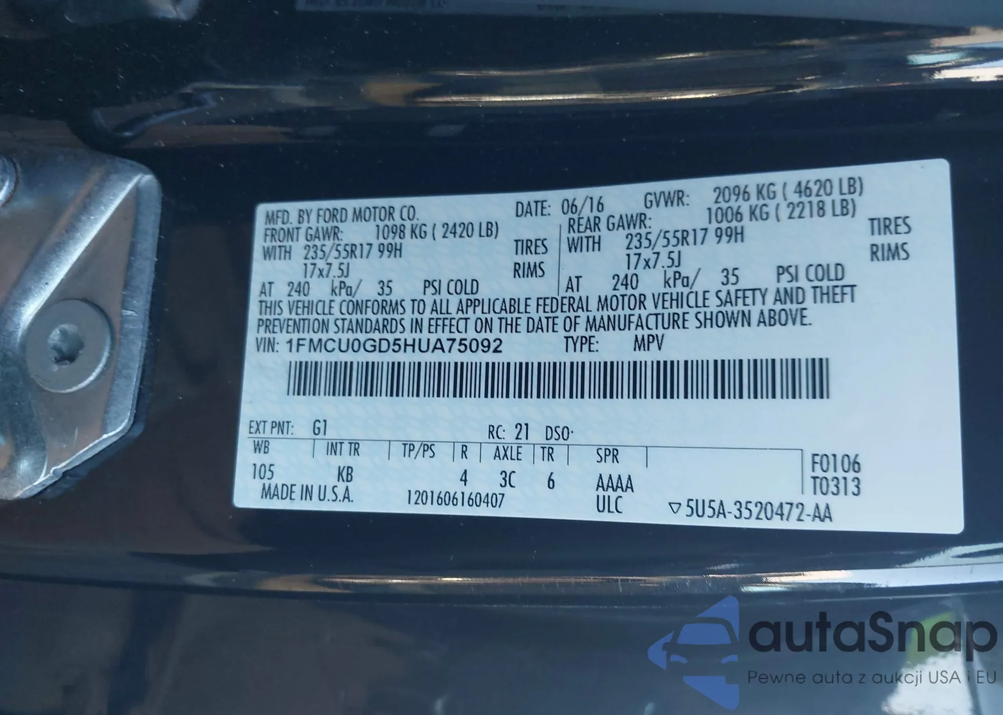• VIN 1FMCU9HD9KUA81973