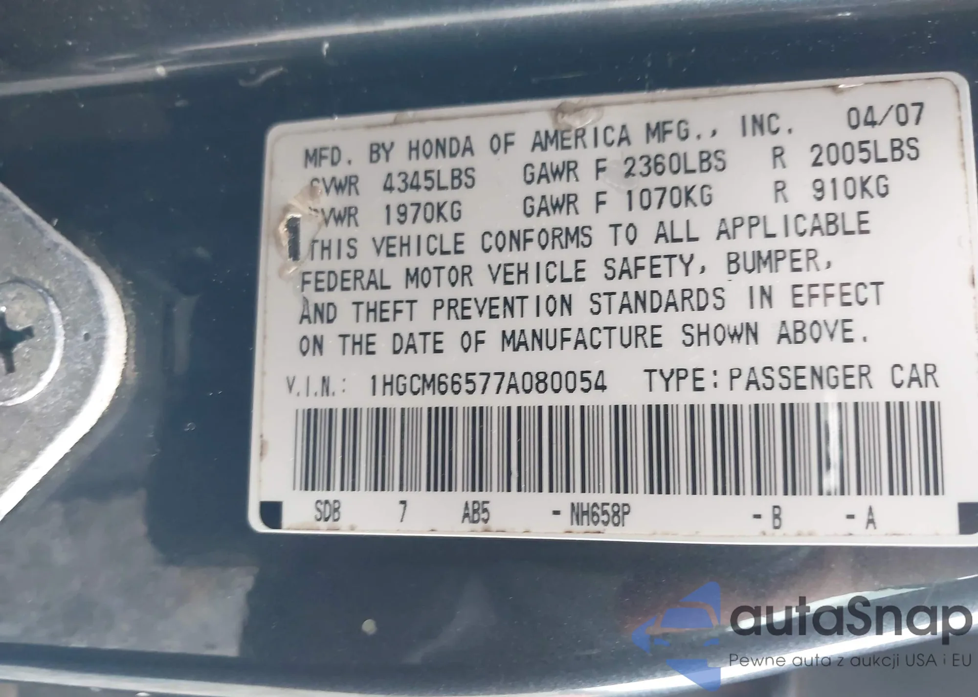 LOT: 43897894 VIN: 2HGFA16899H304111
