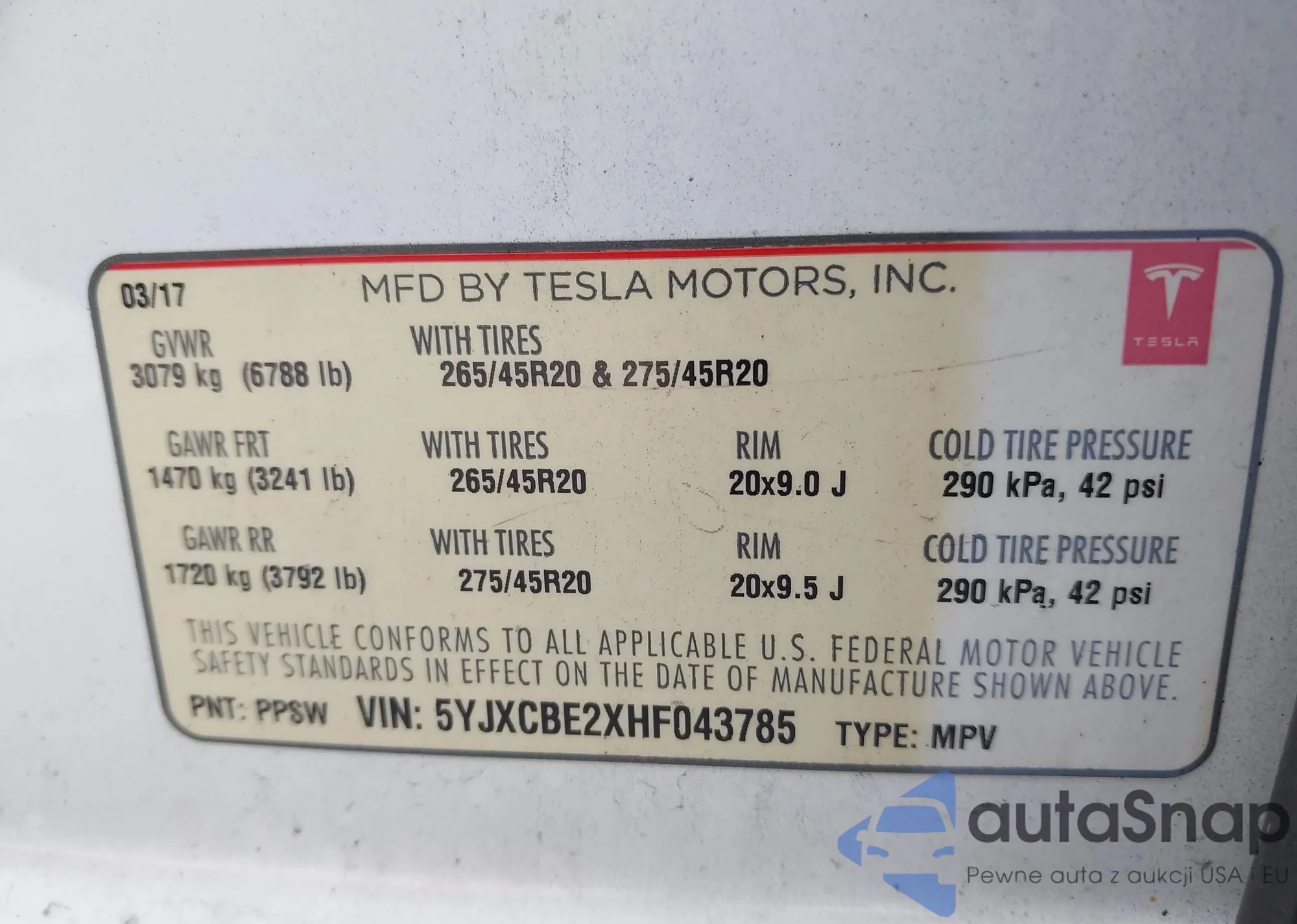 2017 Tesla Model X 100D/75D/90D from USA, damaged, VIN 5YJXCBE2XHF043785