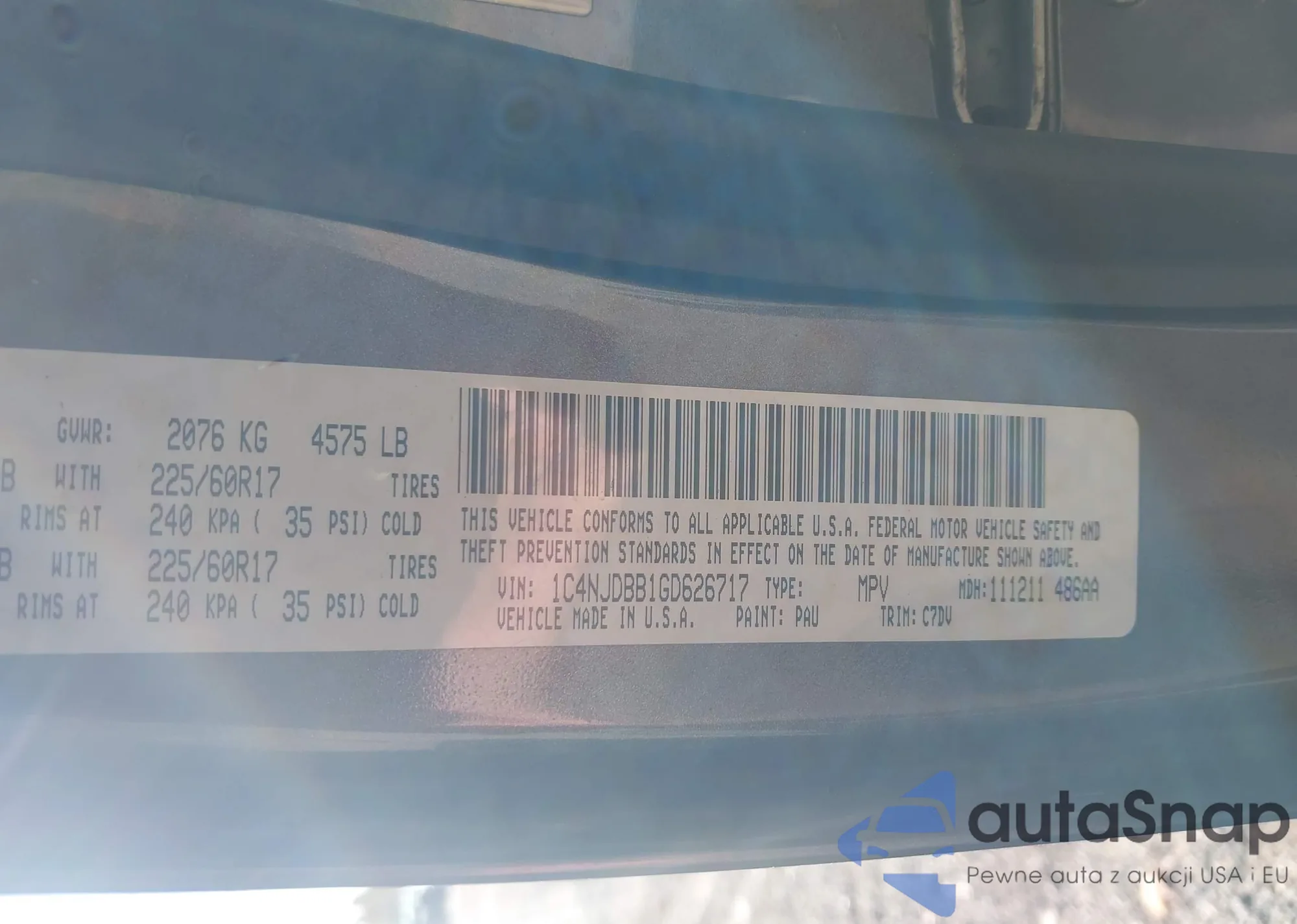 LOT: 43485178 VIN: 1C4NJDBB1GD626717