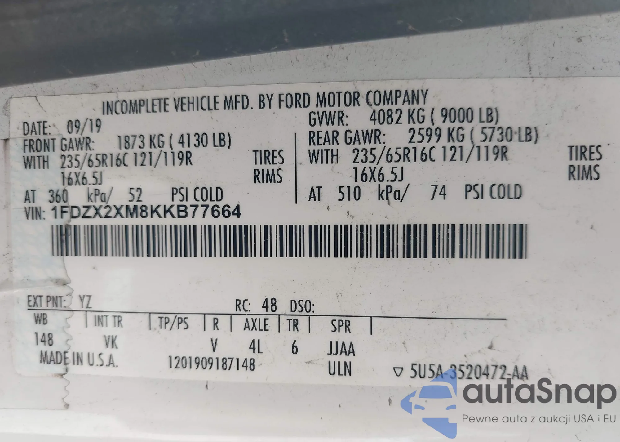 • VIN 1FDZX2XM8KKB77664