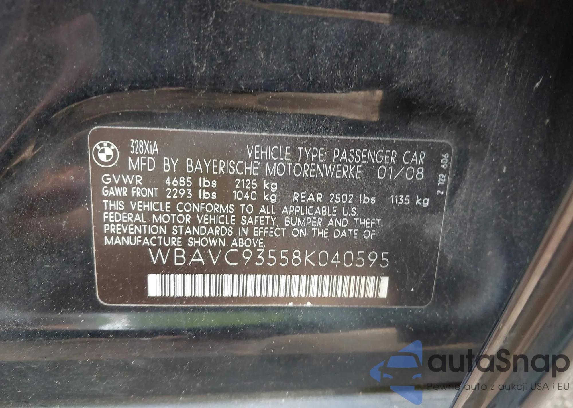 LOT: 43031899 VIN: WBAVC93558K040595