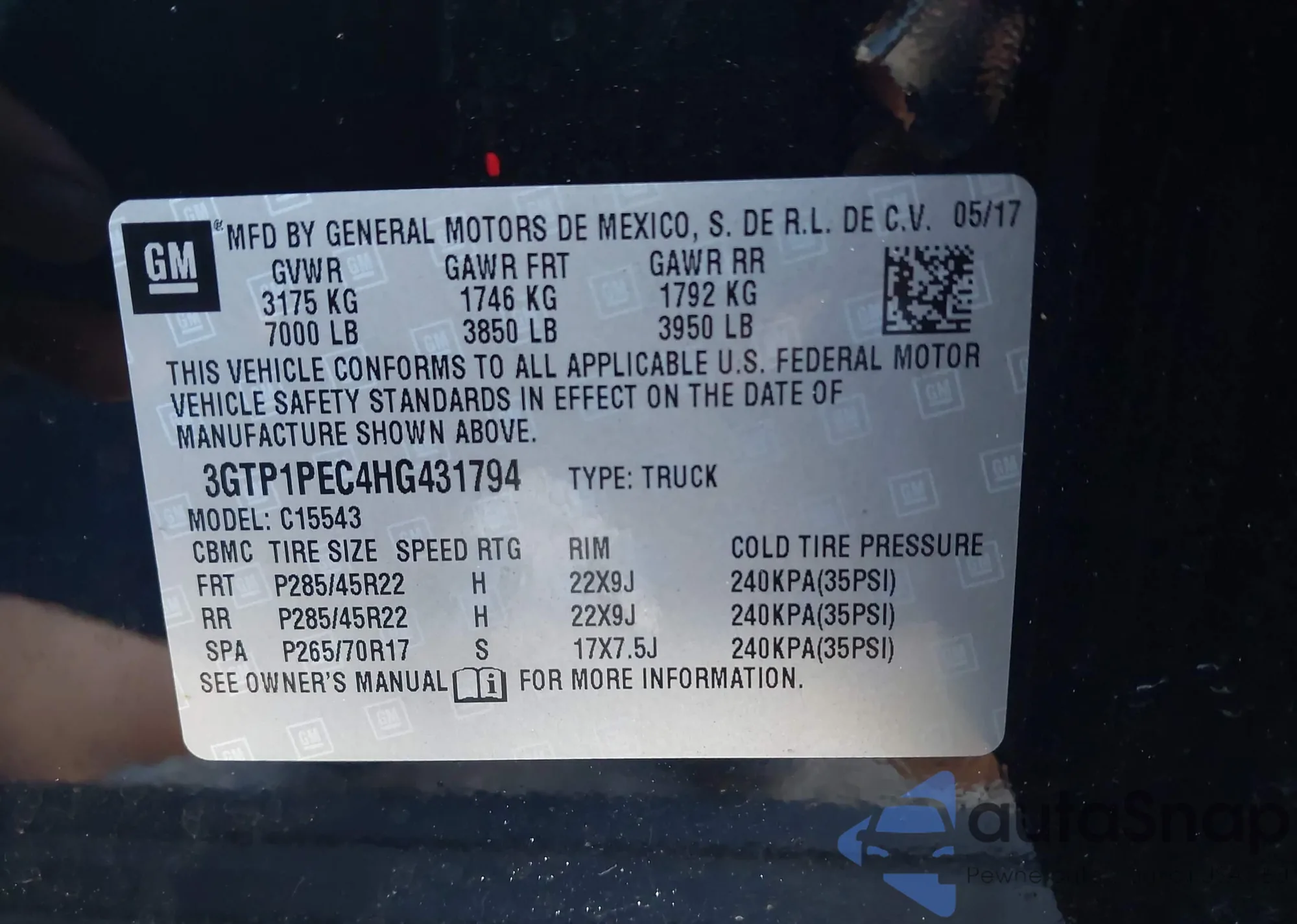 • VIN 3GTP1PEC4HG431794