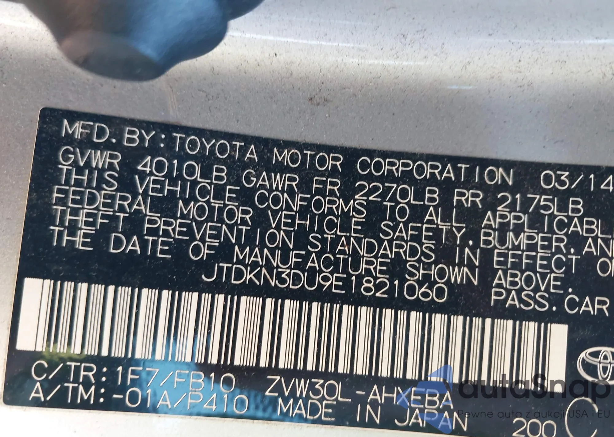 • VIN 5J8TB3H55EL004156