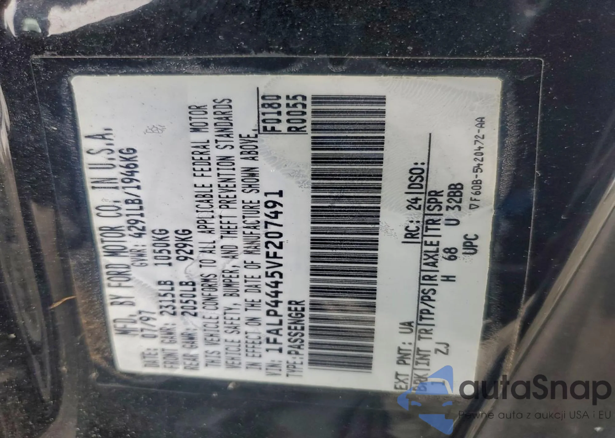 LOT: 95660775 VIN: 1FALP4445VF207491