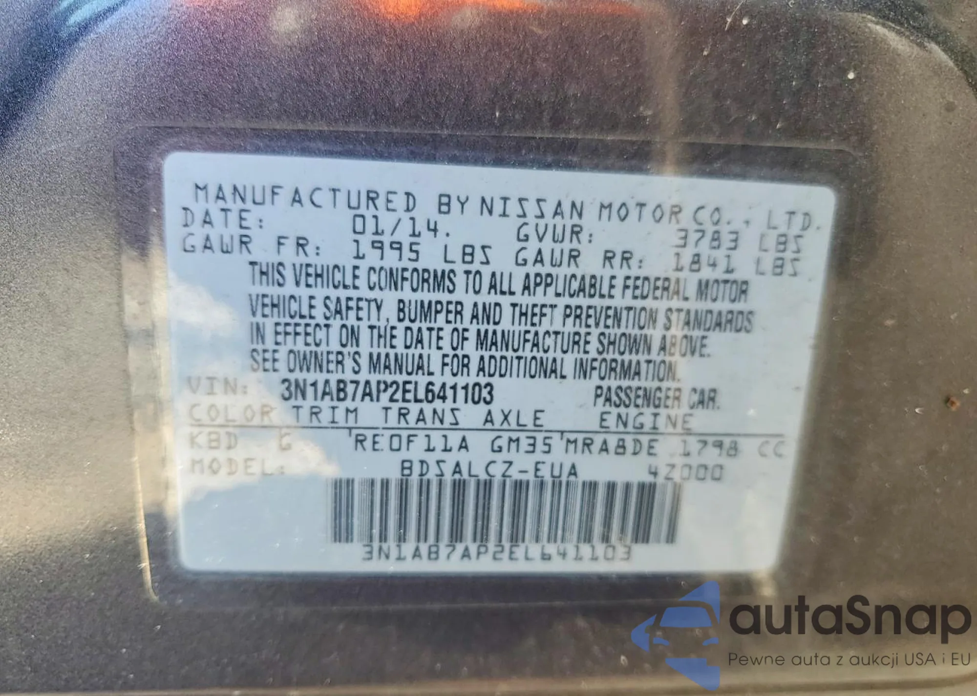 • VIN 3N1AB7AP2EL641103