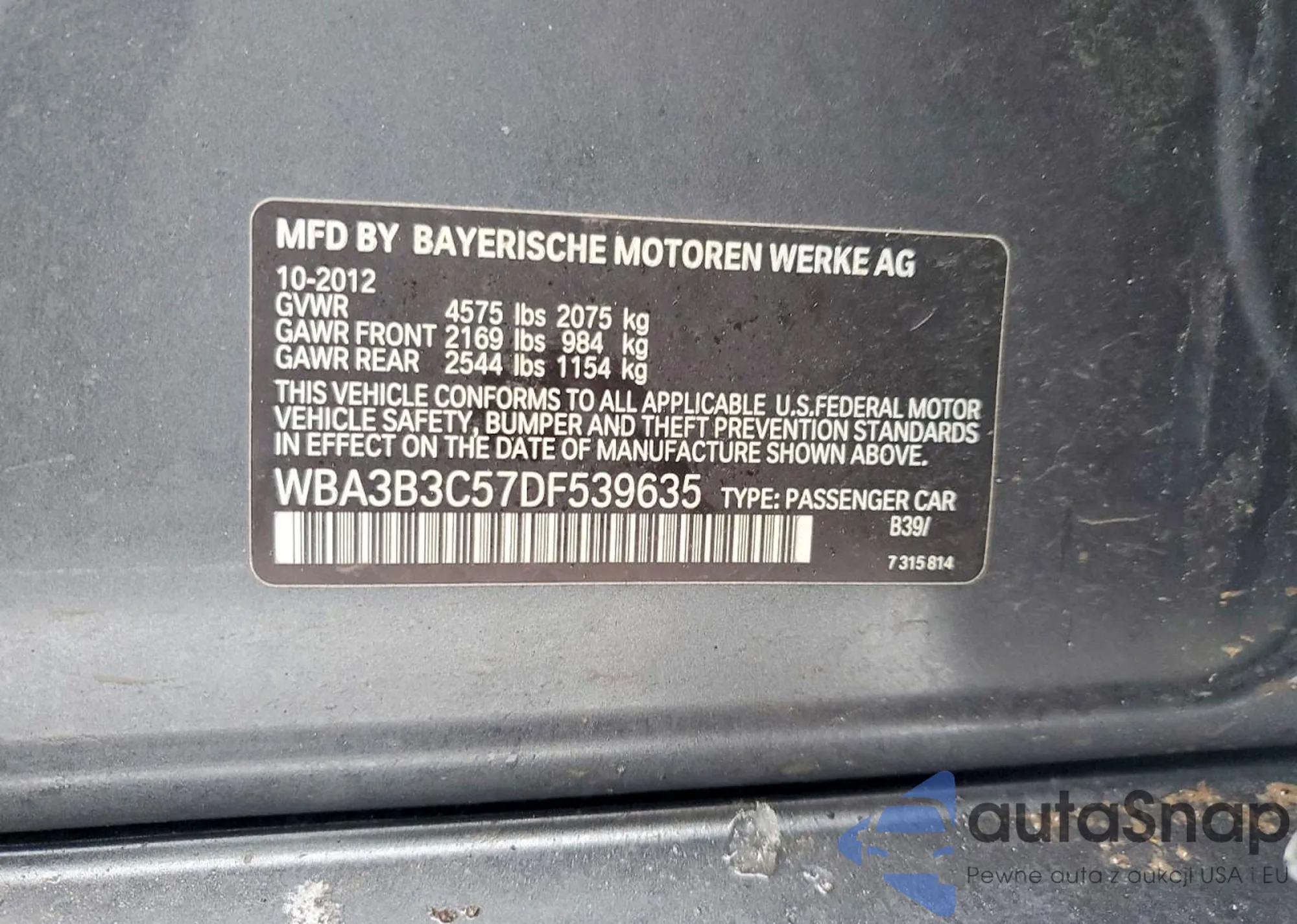 • VIN WBA3B3C57DF539635