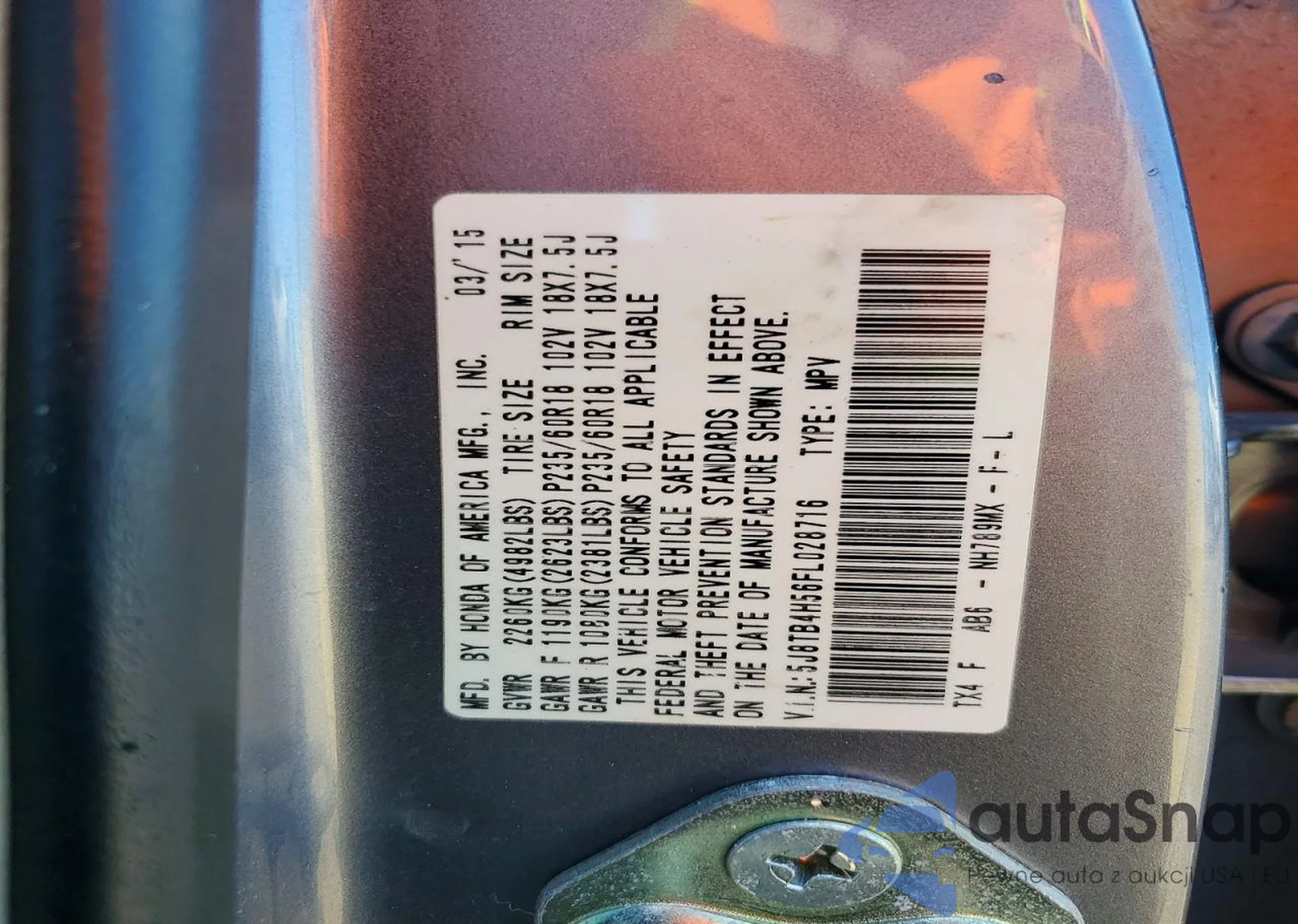 • VIN 5J8TB4H56FL028716