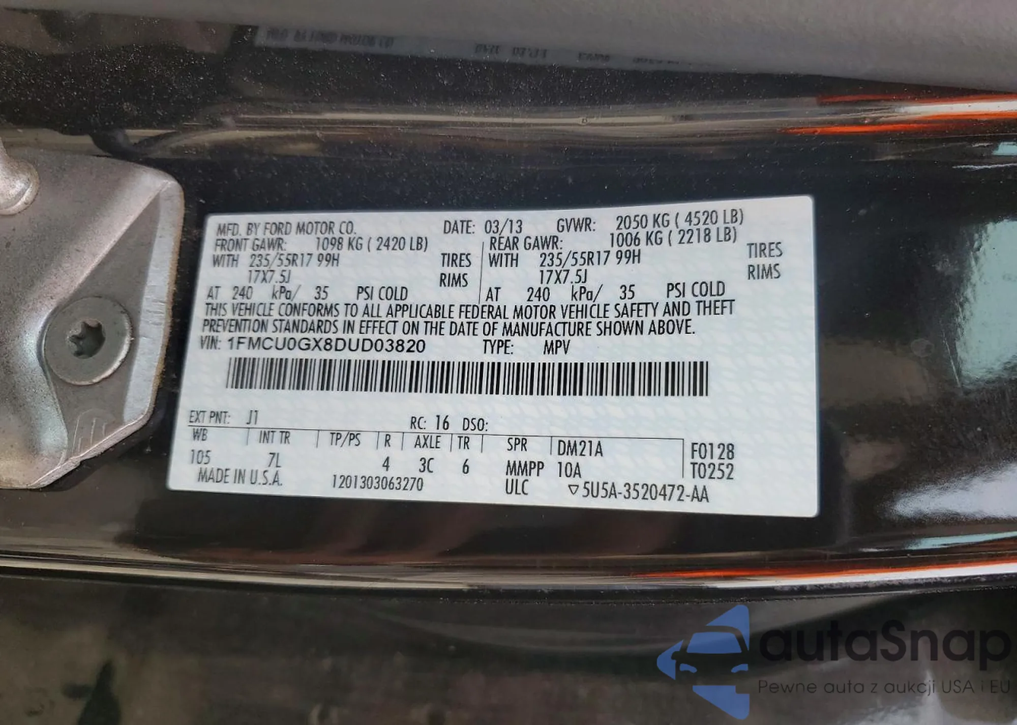 • VIN 1FMCU0GX8DUD03820