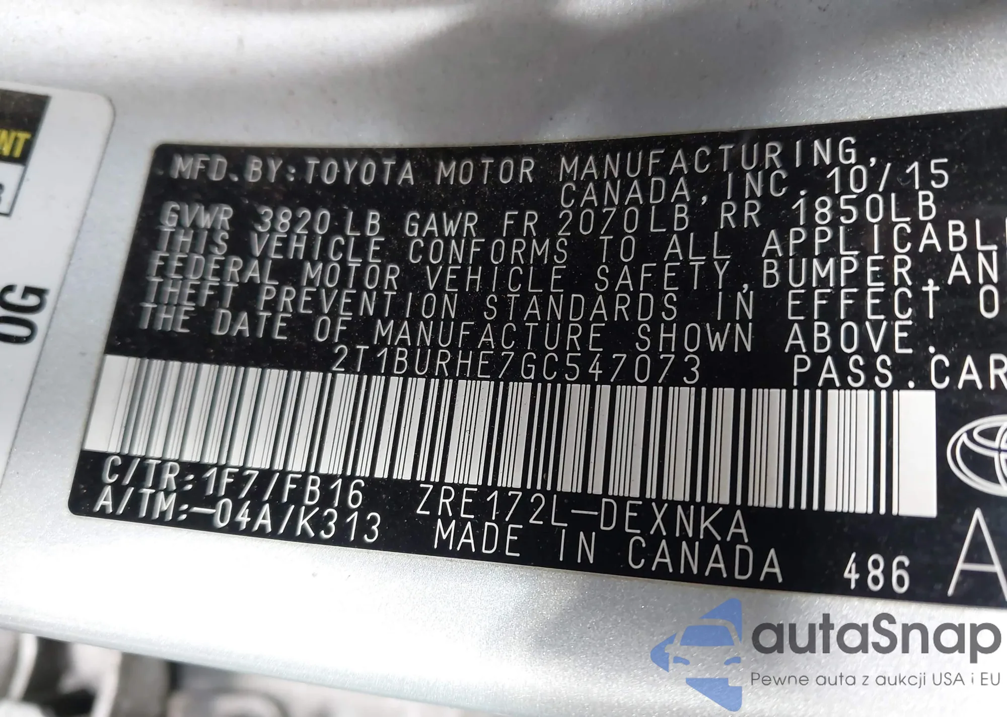 • VIN 2T1BURHE7GC547073