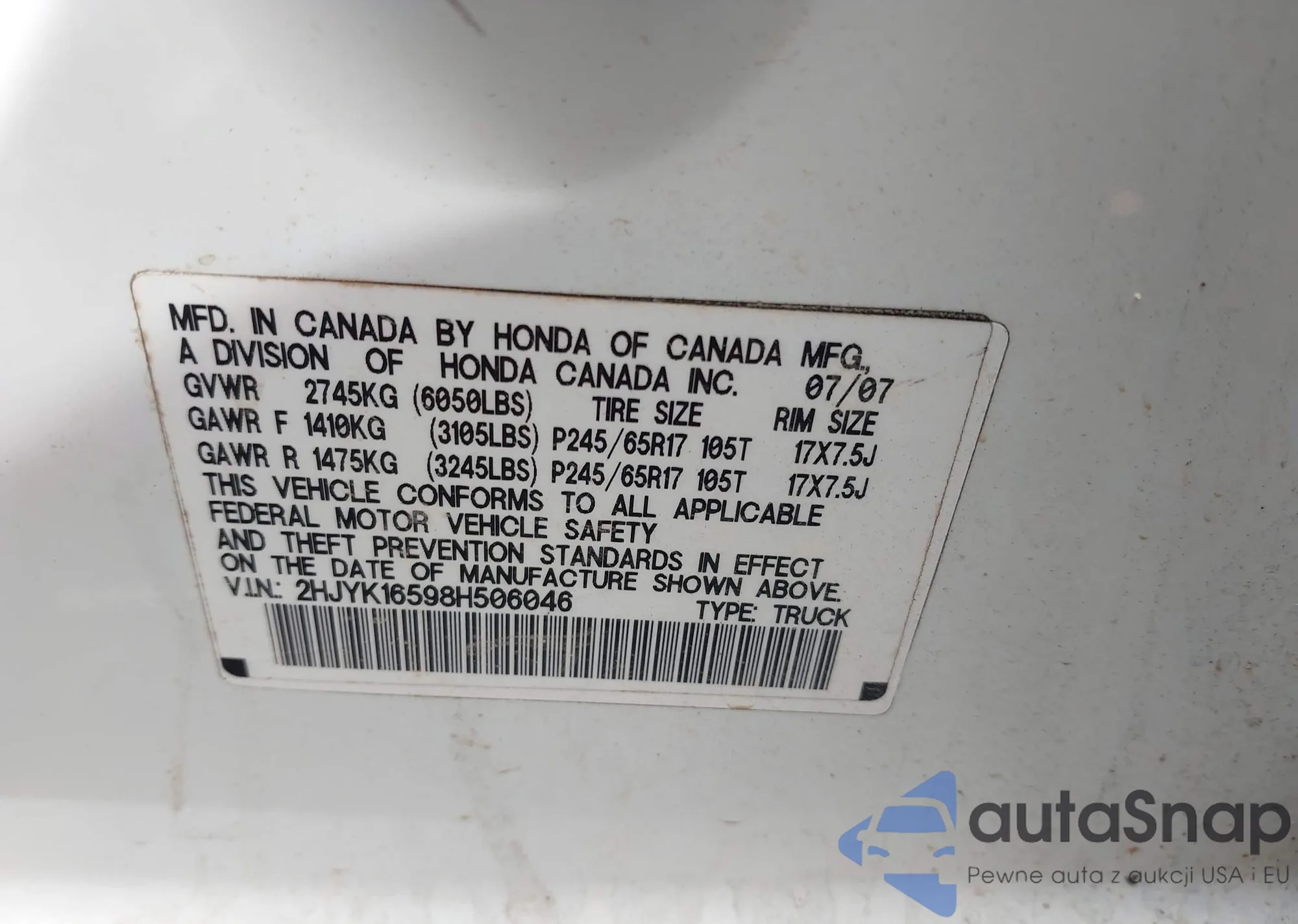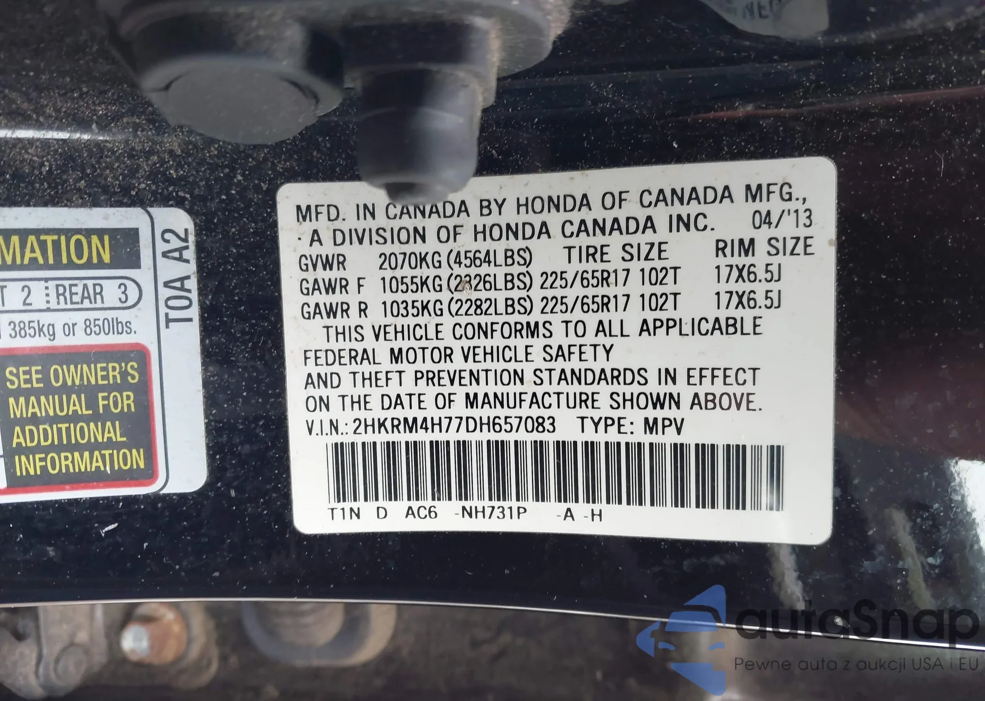 • VIN 2HKRM4H77DH657083