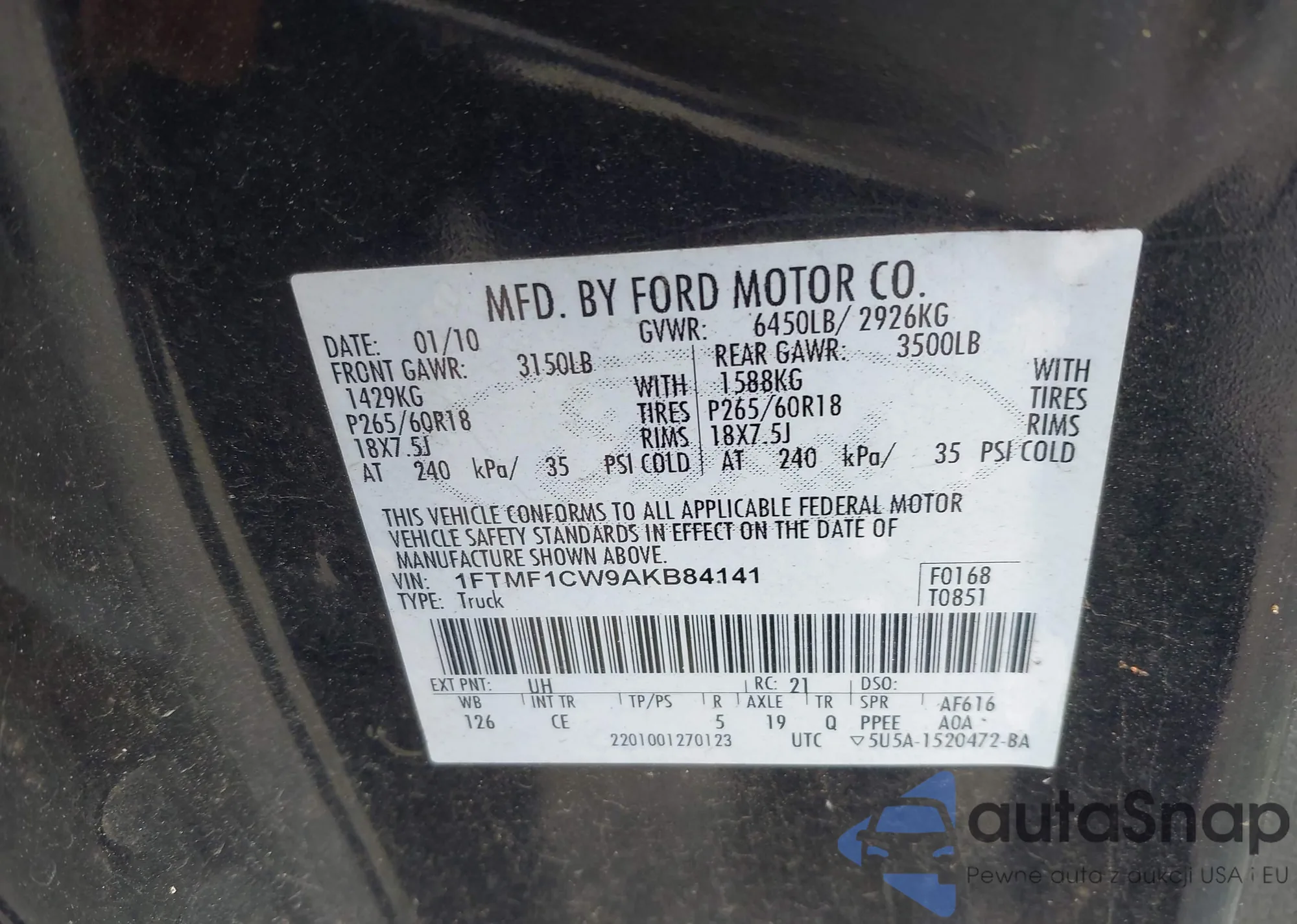 • VIN 1FTMF1CW9AKB84141