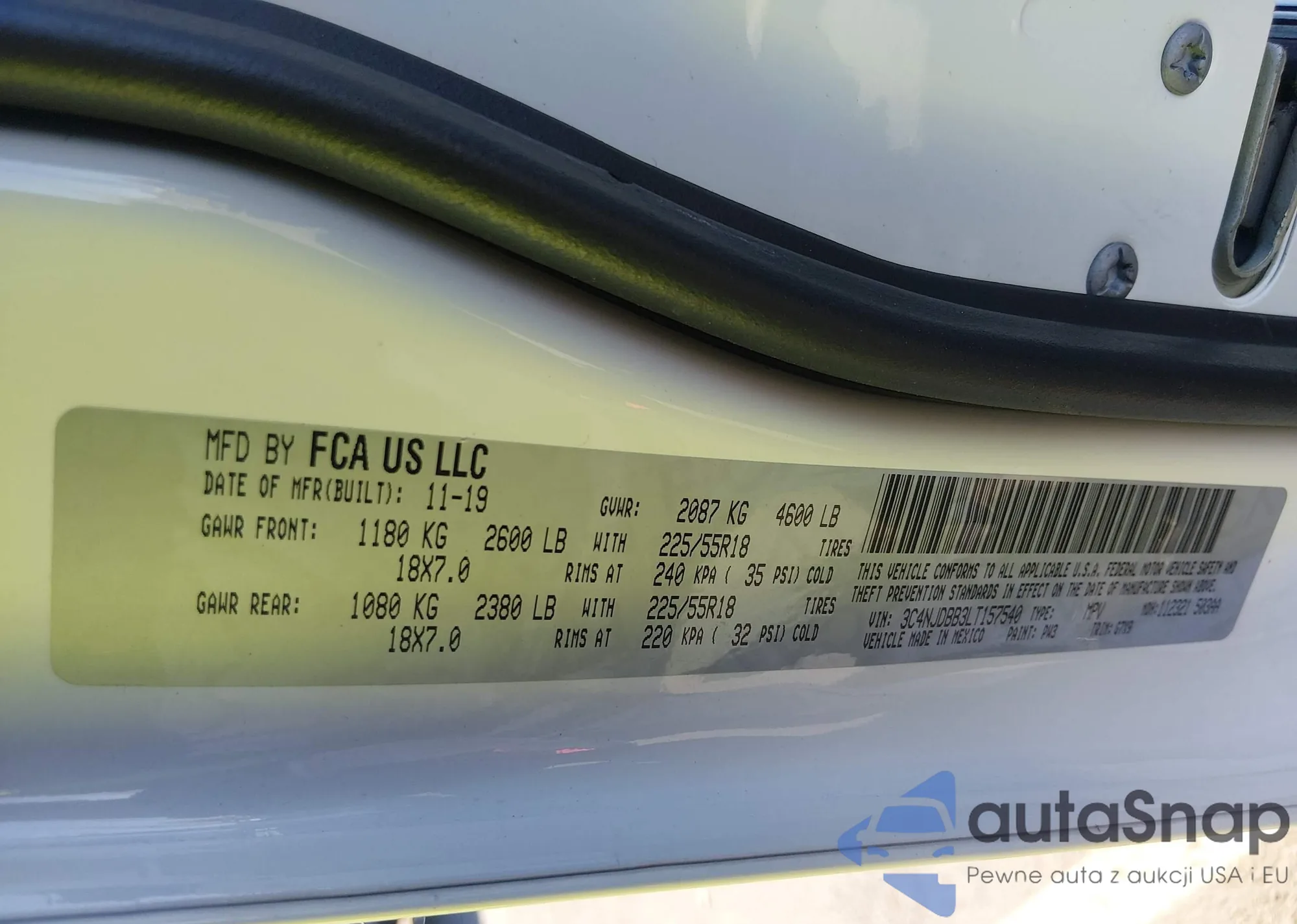 LOT: 43879399 VIN: 3C4NJDBB3LT157540