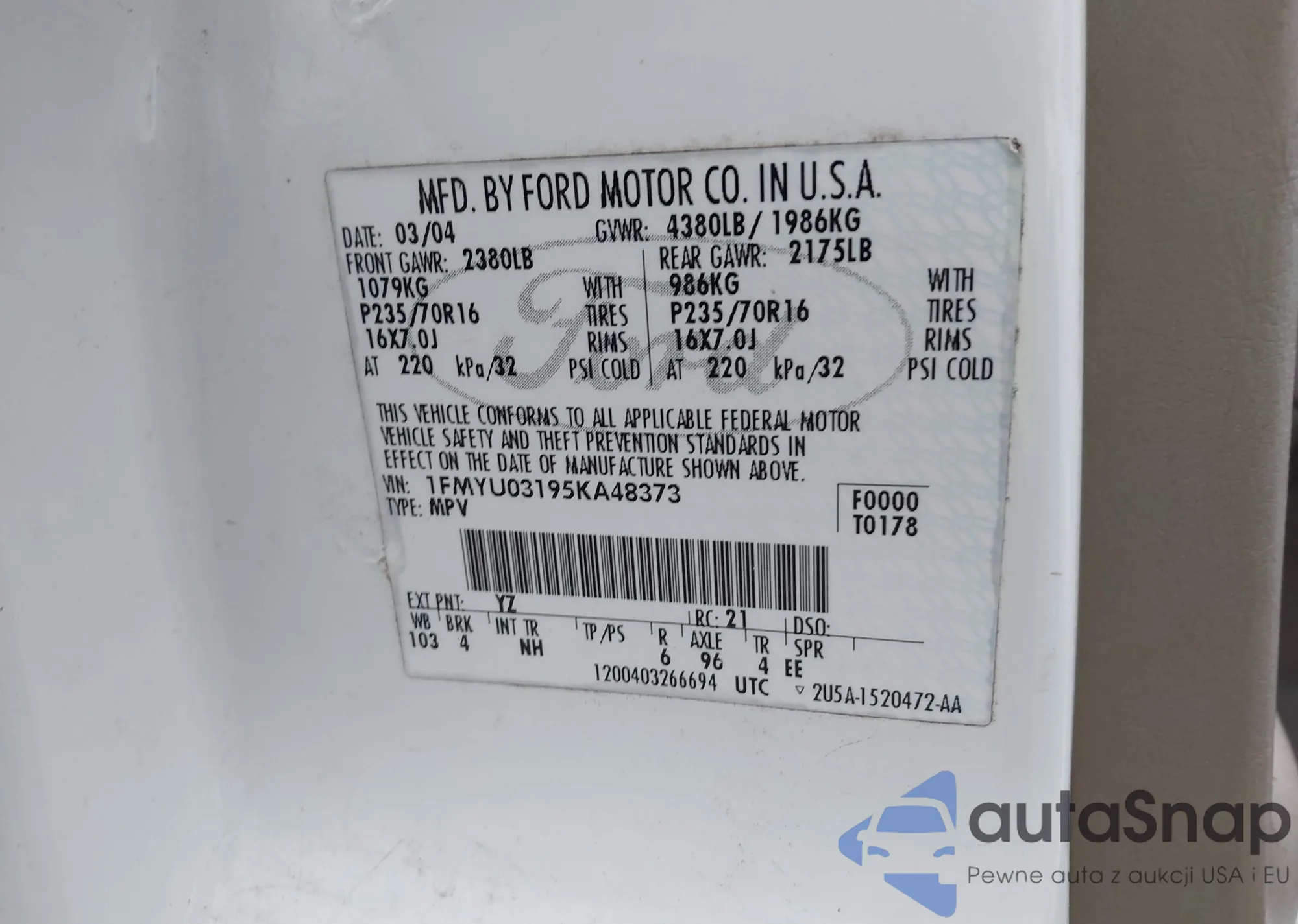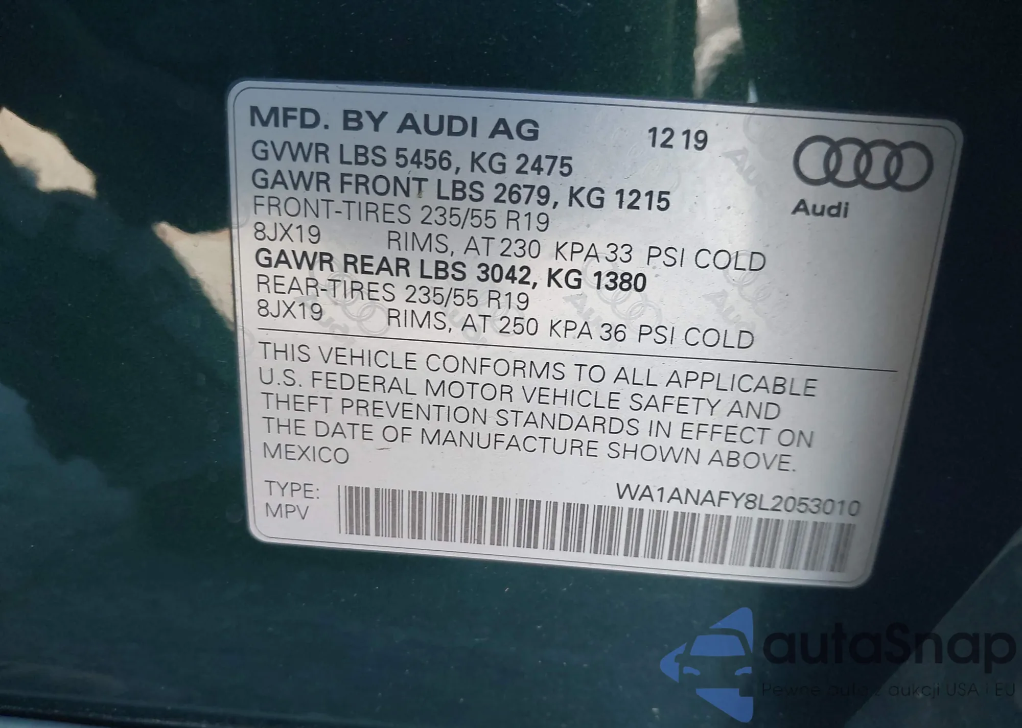 LOT: 43800416 VIN: WA1ANAFY8L2053010