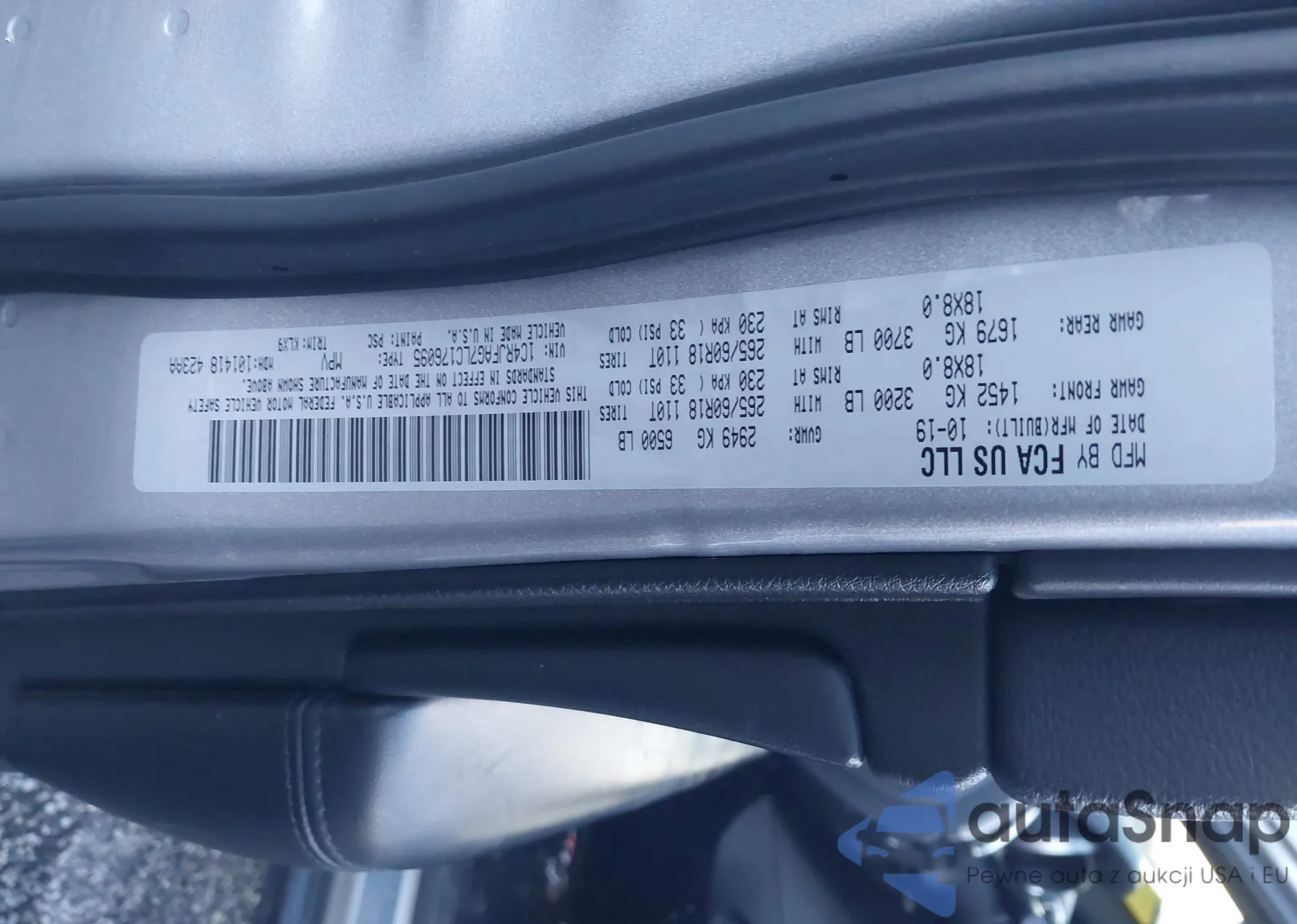• VIN 1C4RJFAG7LC176095