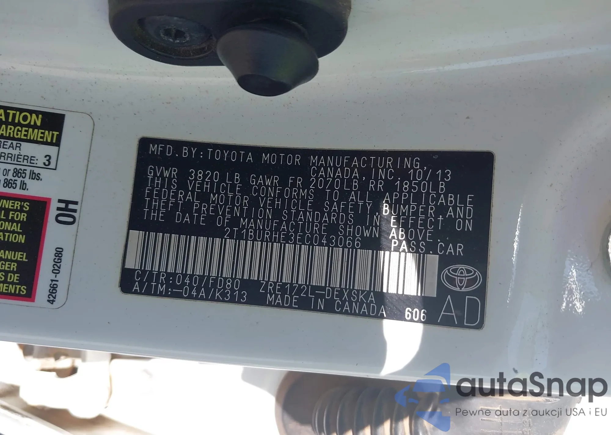 LOT: 43927015 VIN: 2T1BURHE3EC043066