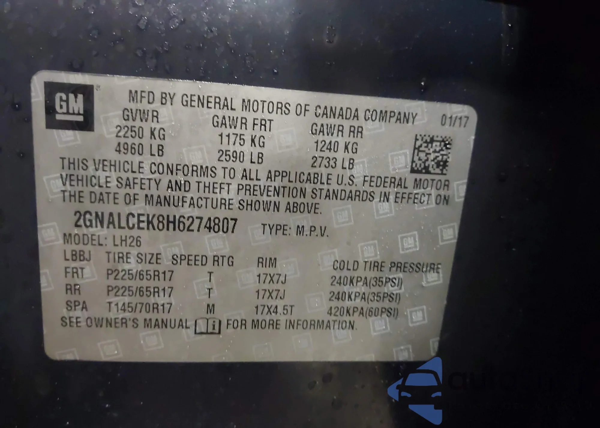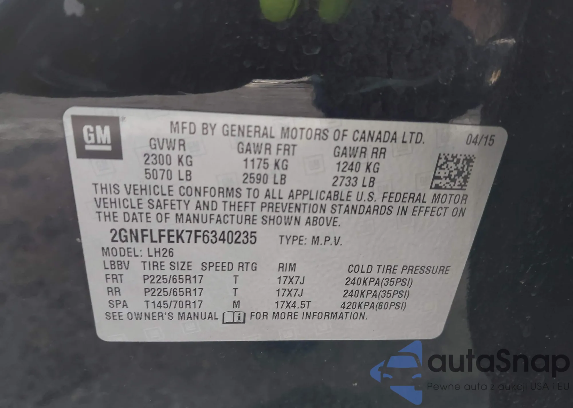 • VIN 2GNFLFEK7F6340235