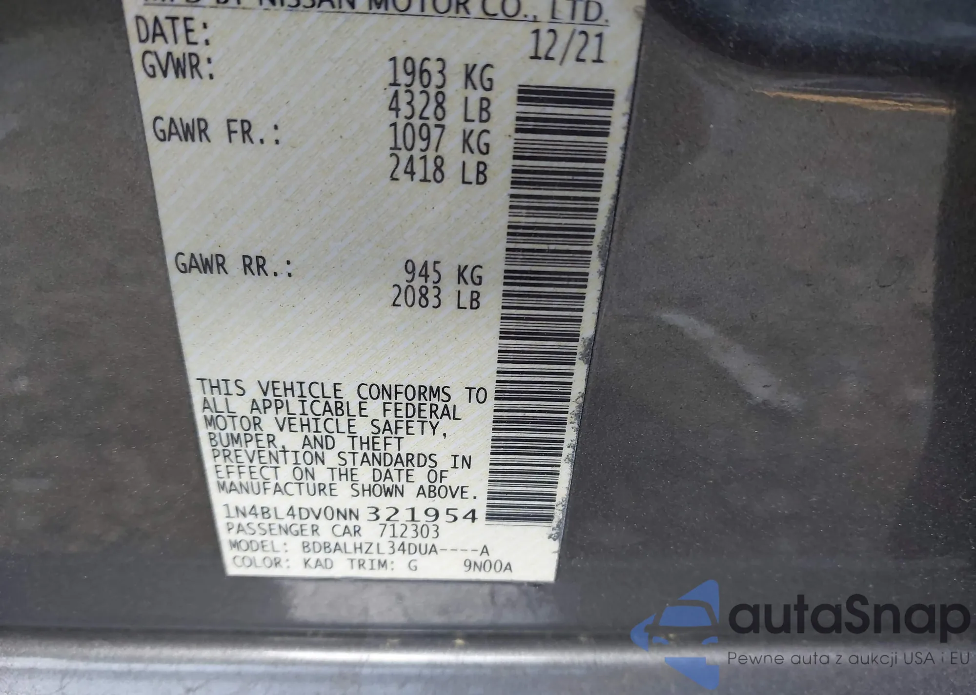• VIN 1N4BL4DV0NN321954