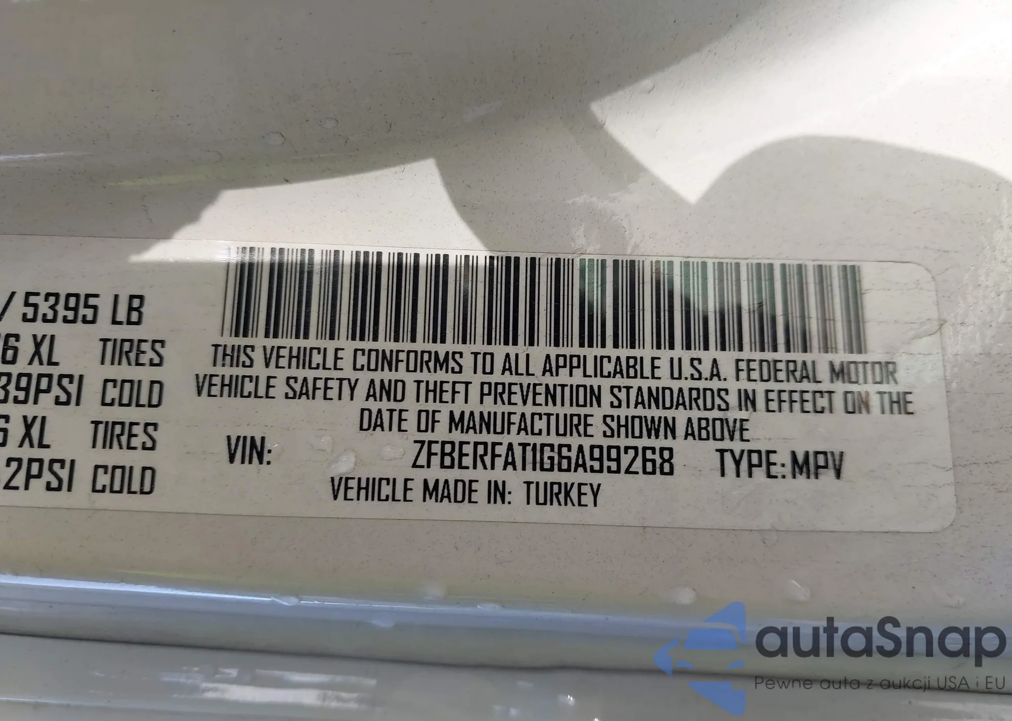 LOT: 44152181 VIN: ZFBERFAT1G6A99268