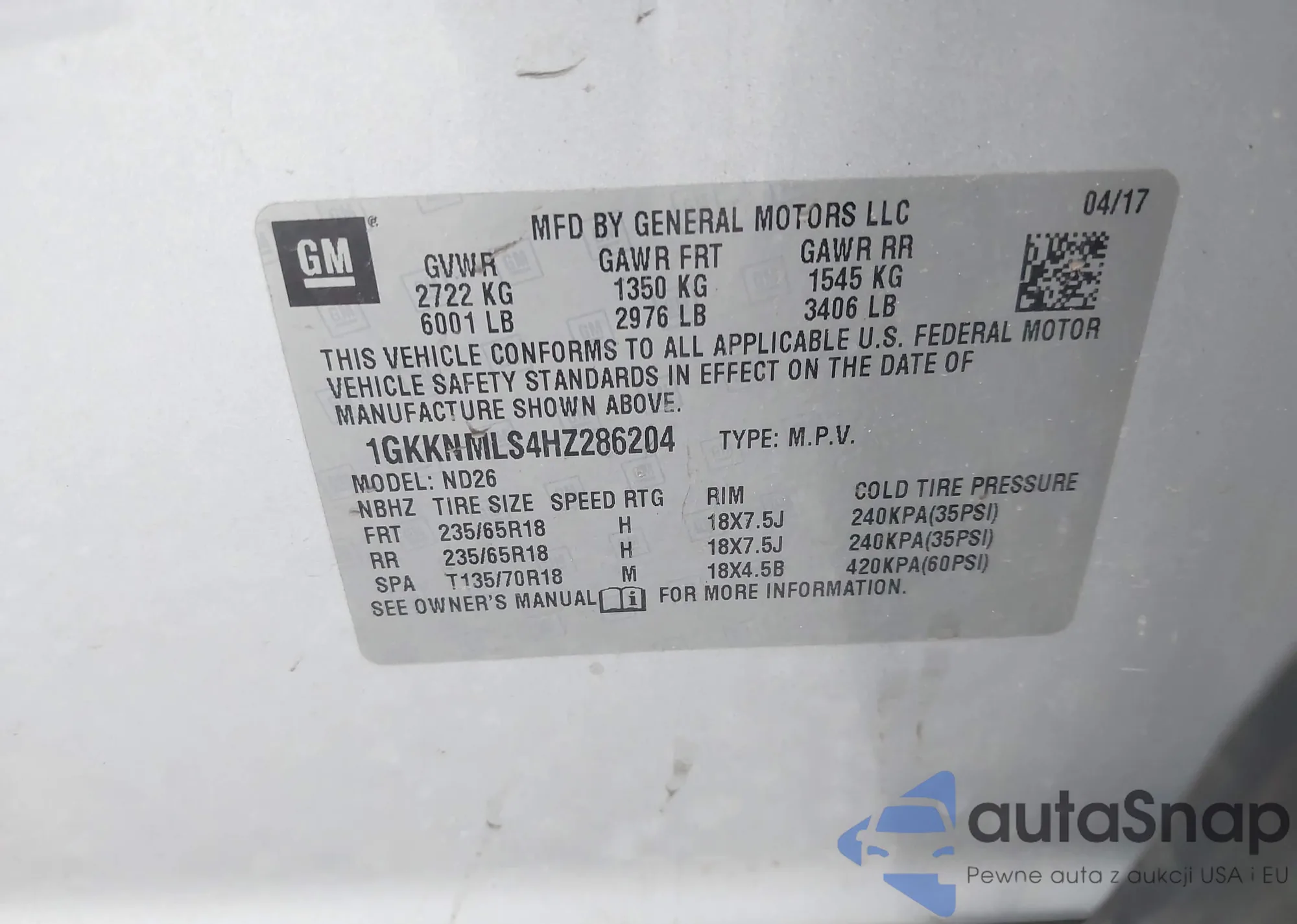• VIN YV4L12DK9N1950017