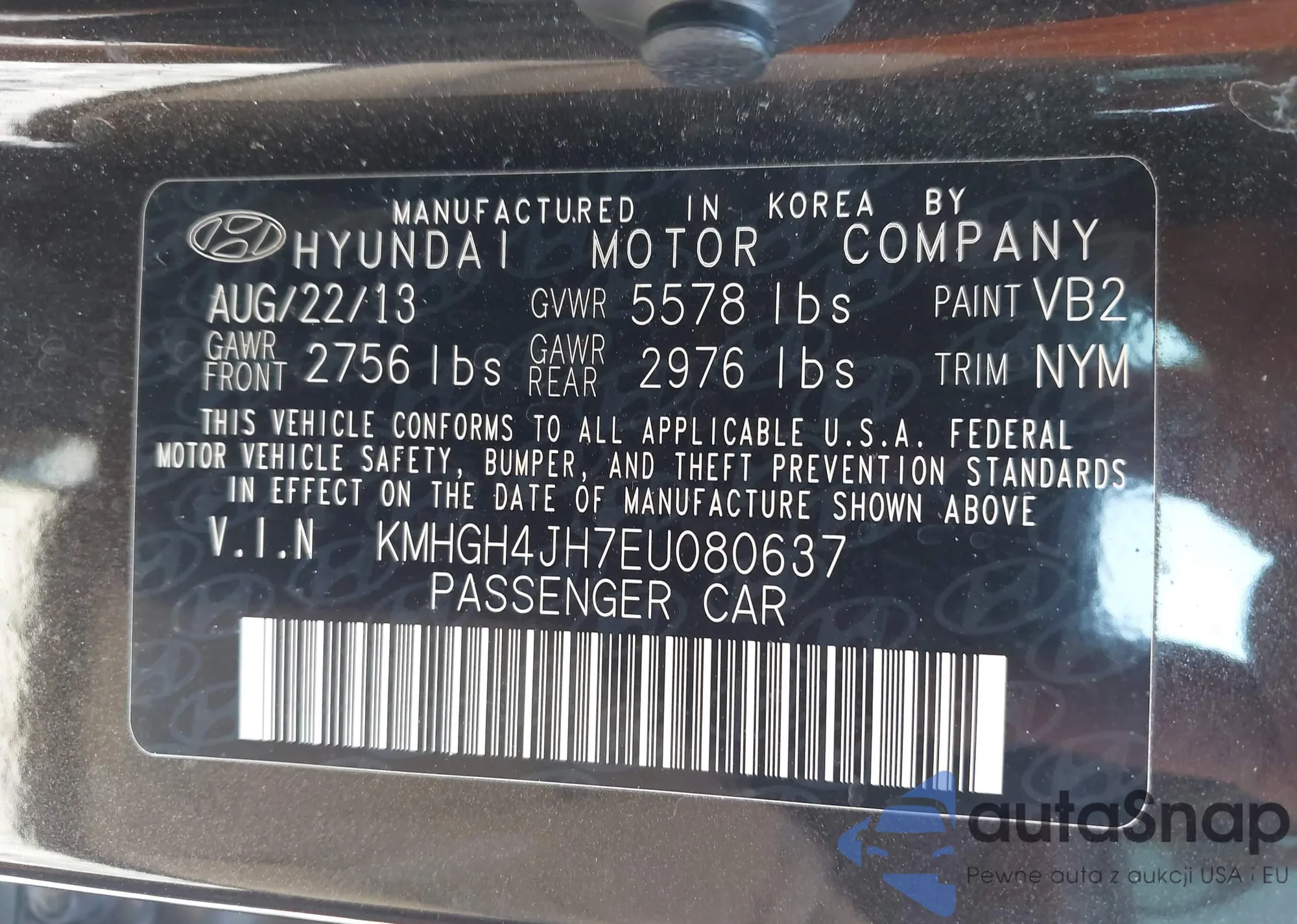 • VIN KMHGH4JH7EU080637