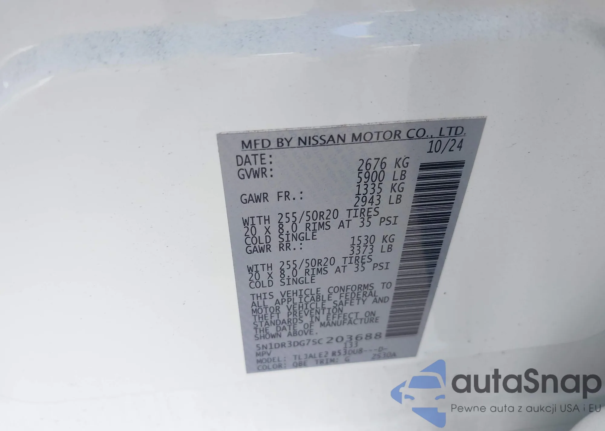 • VIN 5N1DR3DG7SC203688