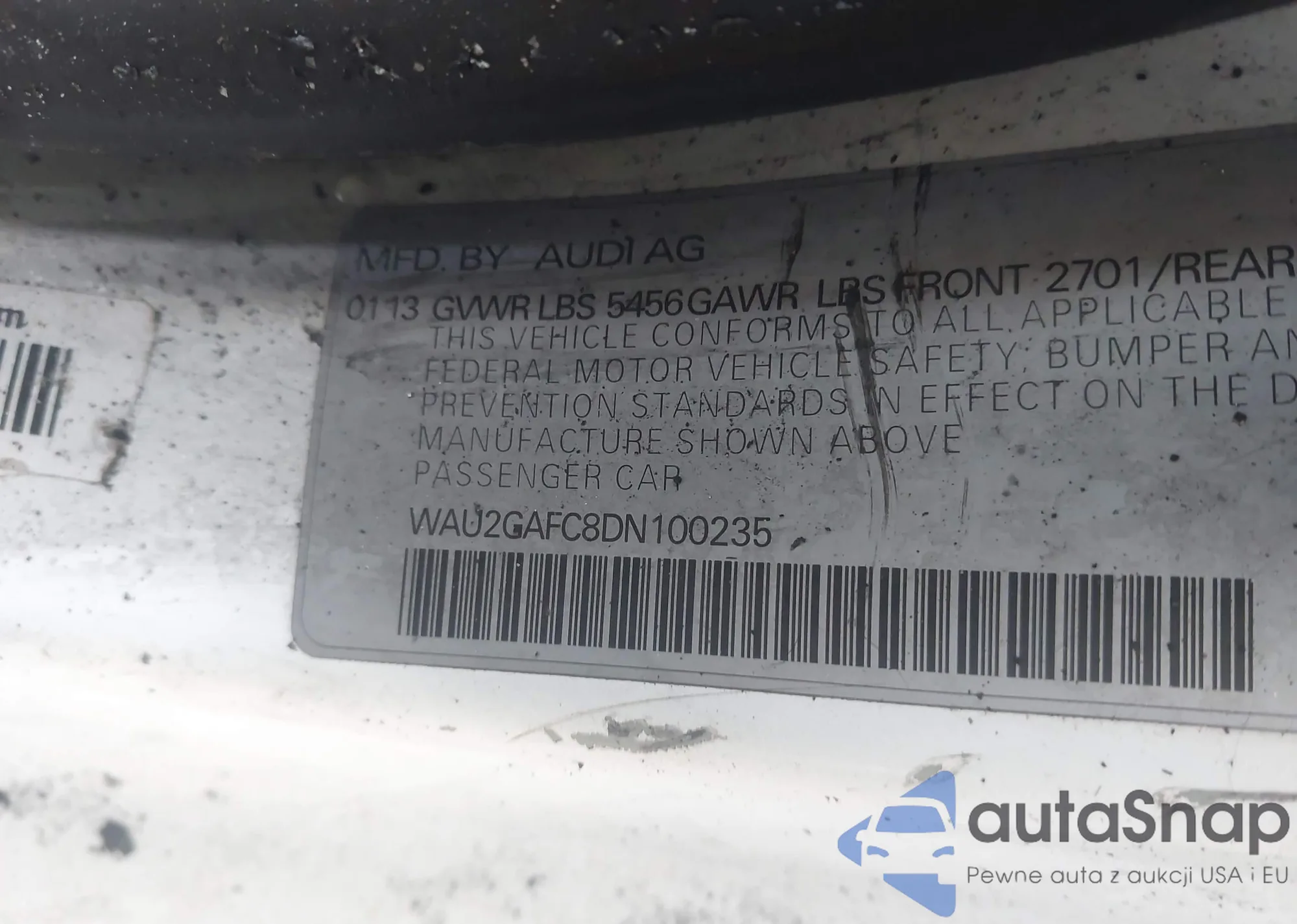 LOT: 44058103 VIN: WAU2GAFC8DN100235