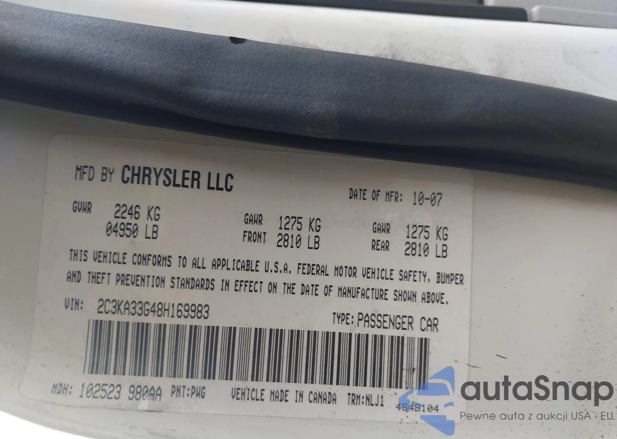 • VIN 2C3KA33G48H169983