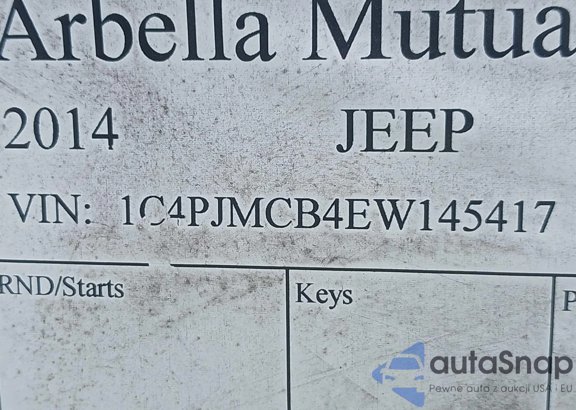 LOT: 44020597 VIN: 1C4PJMCB4EW145417