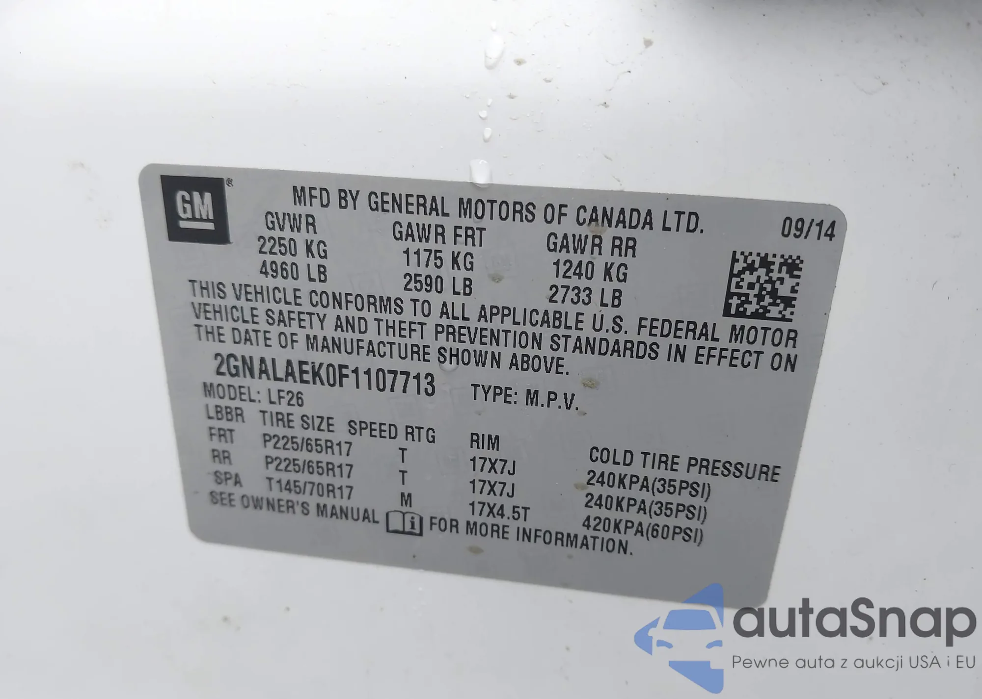 • VIN 2G4GN5EC7B9175382