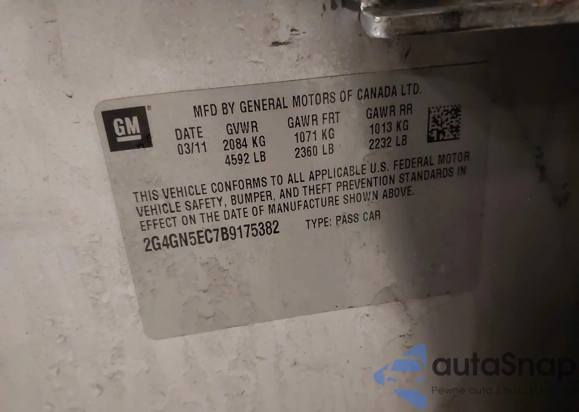 LOT: 44064937 VIN: 2G4GN5EC7B9175382