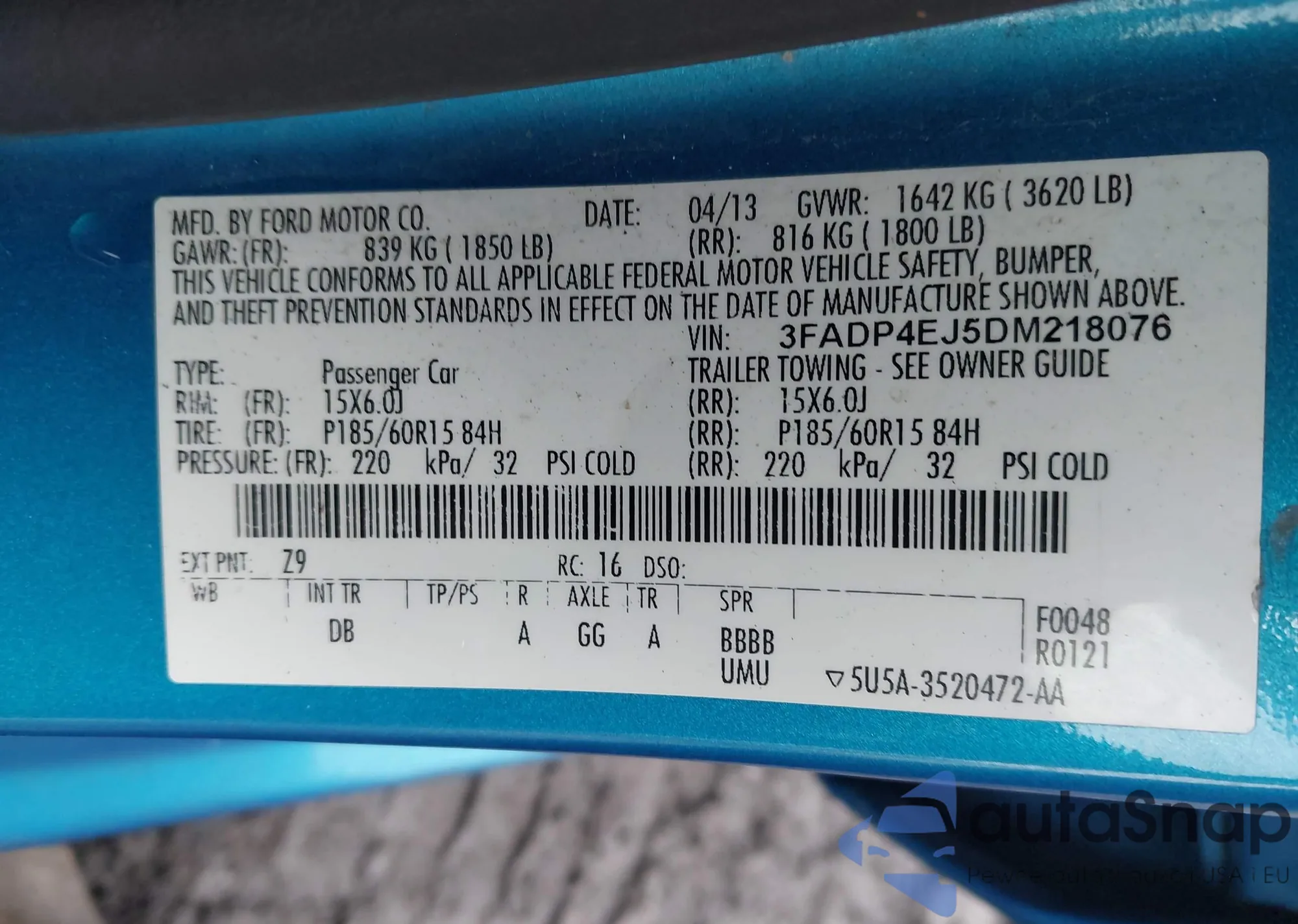 • VIN 3FADP4EJ5DM218076