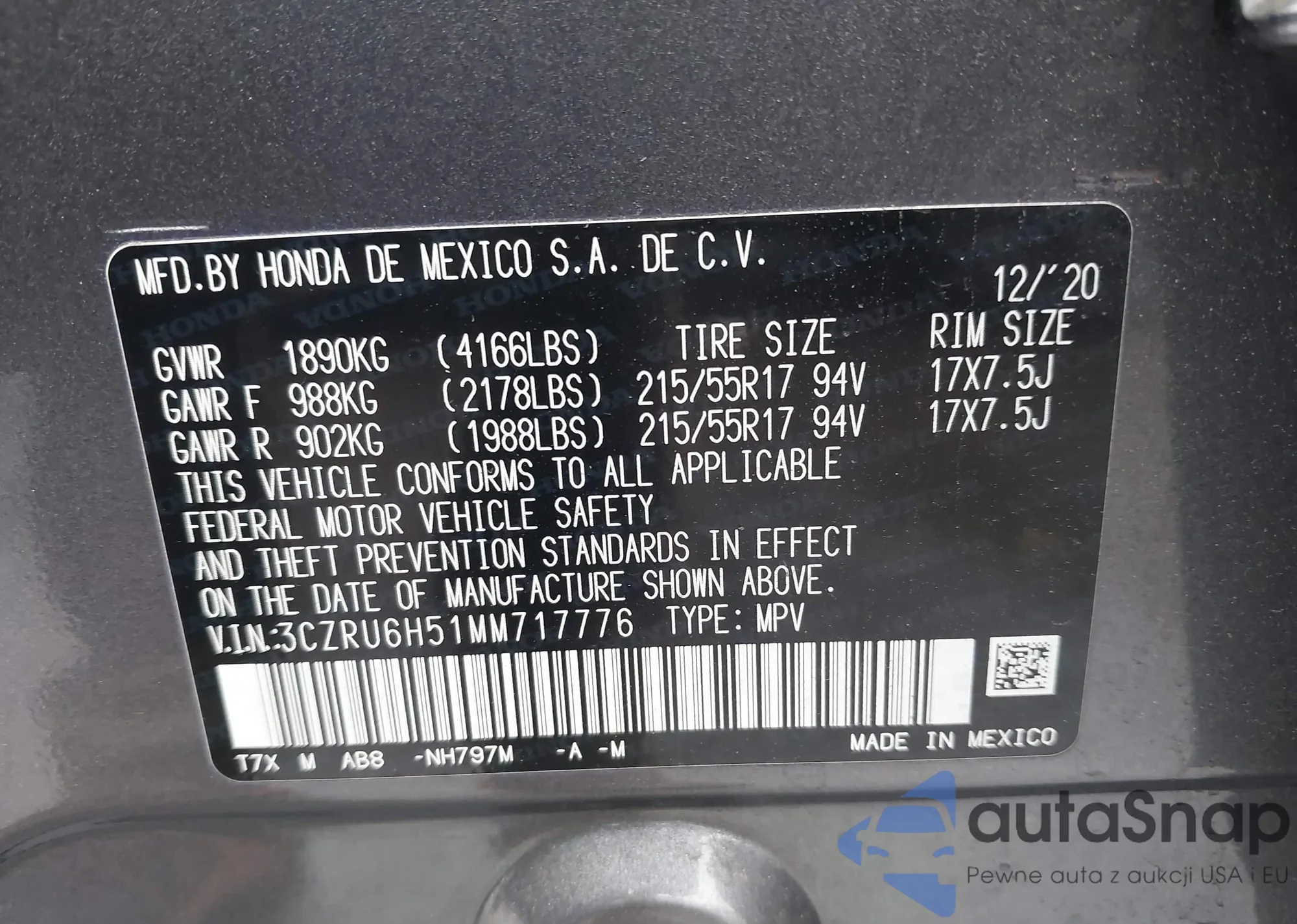 • VIN 5J8YD4H50HL007444