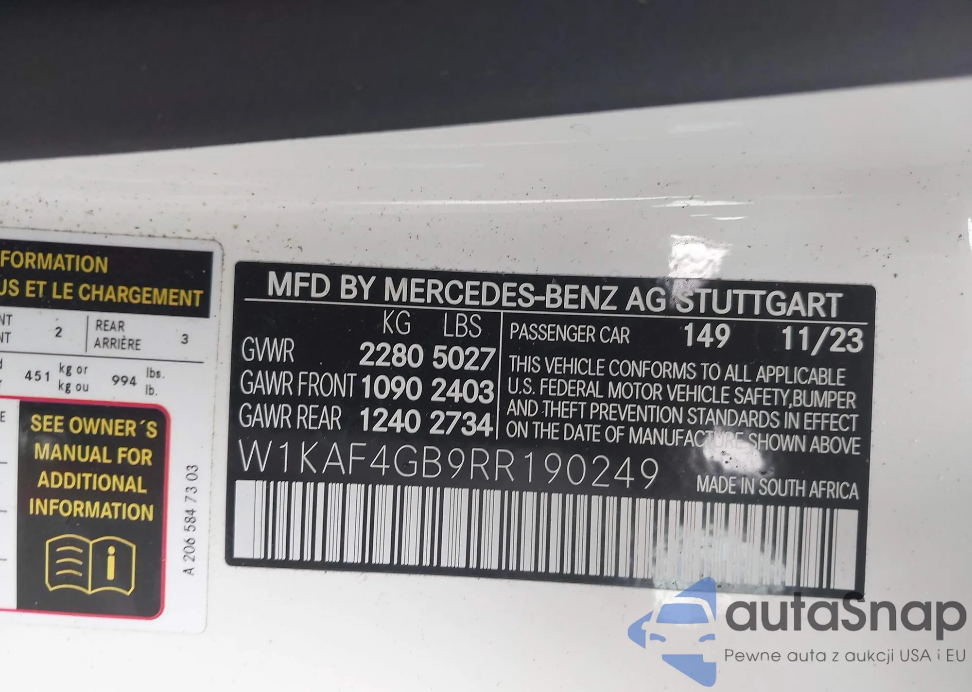 • VIN W1KAF4GB9RR190249